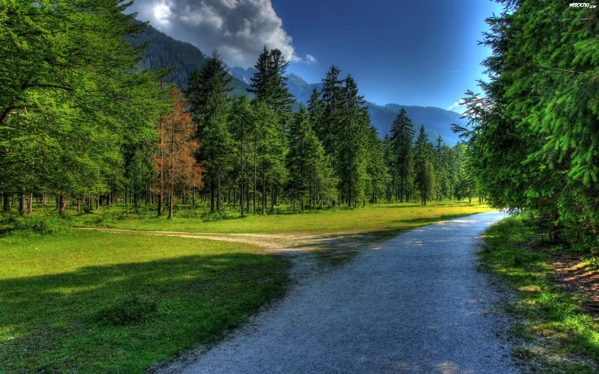 Zdjęcia, Zielony, Las, Świerki, Droga, Góry