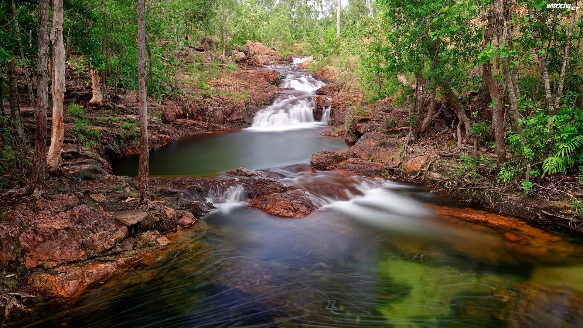 Zdjęcia, Zielony, Las, Skały, Rzeka