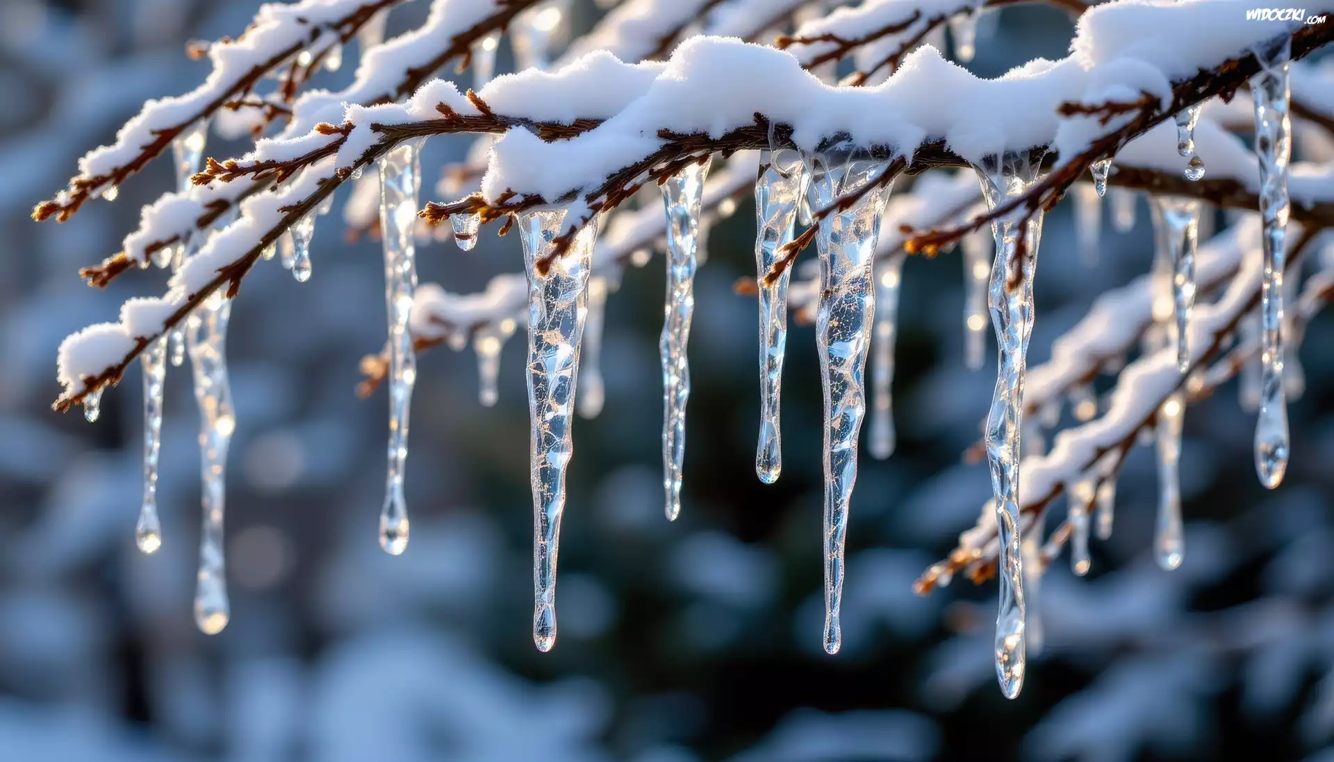 Sople, Śnieg, Gałązki, Zima, Grafika AI