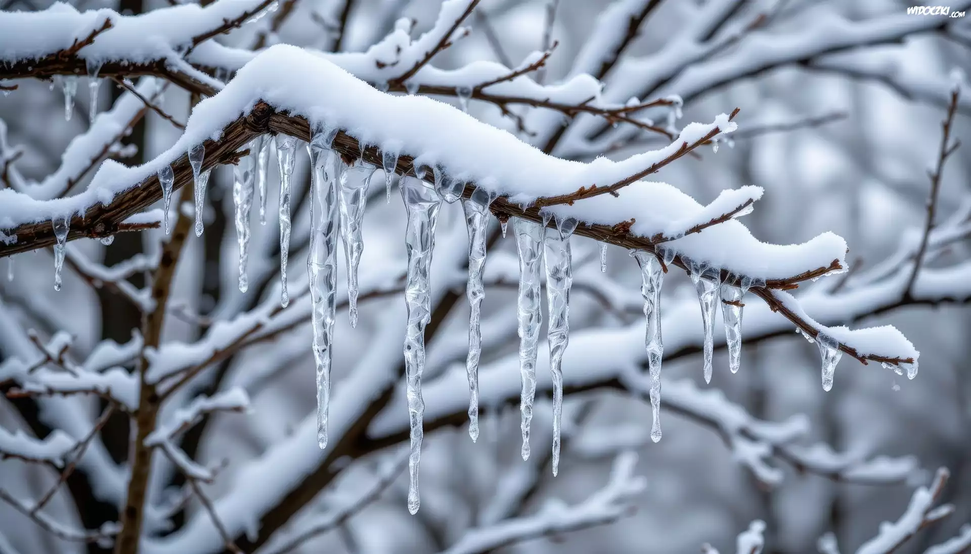 Zdjęcia, Gałęzie, Sople, Śnieg, Zima, Grafika AI
