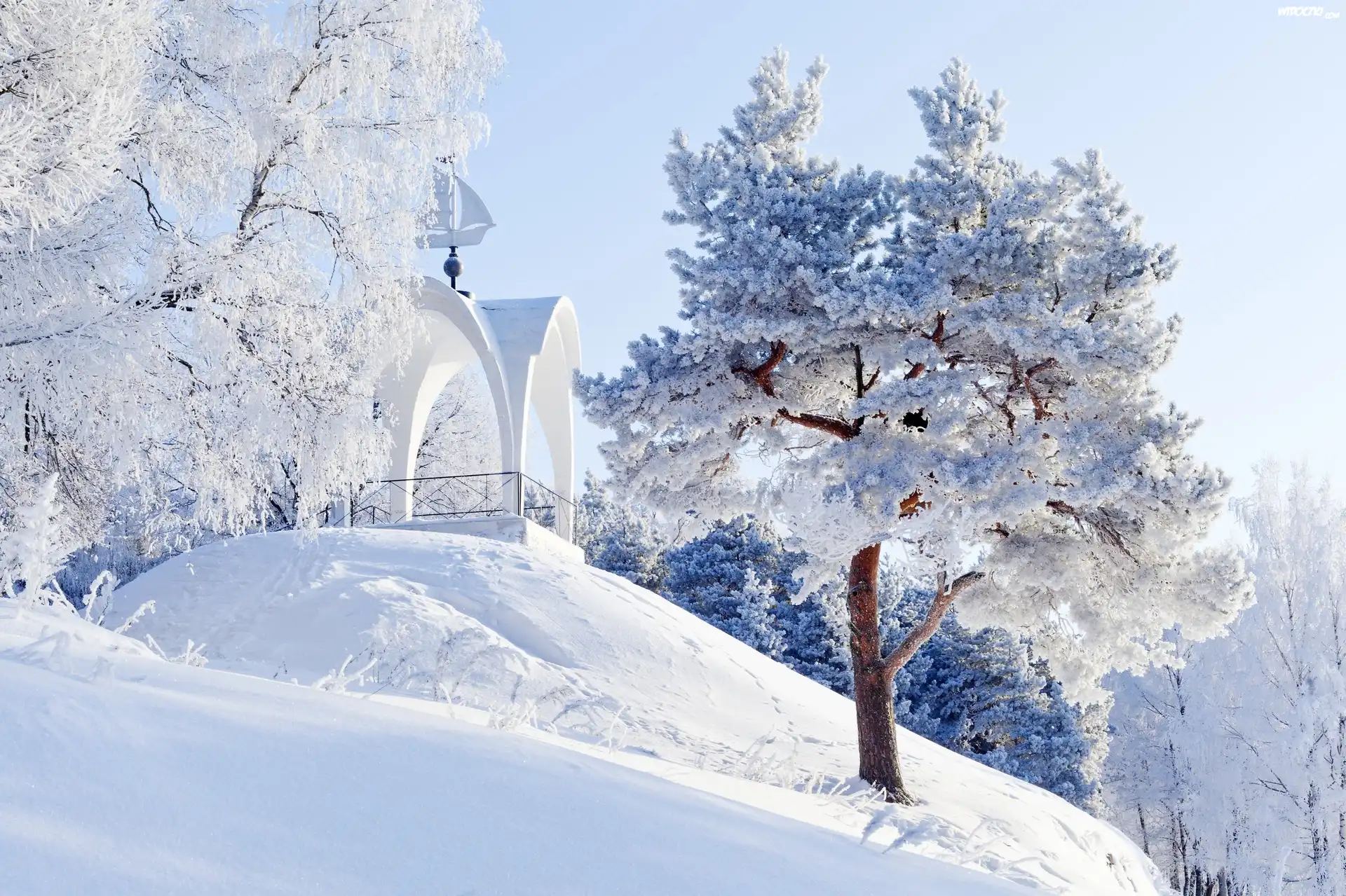 Zdjęcia, Zima, Drzewa, Altana, Wzgórze