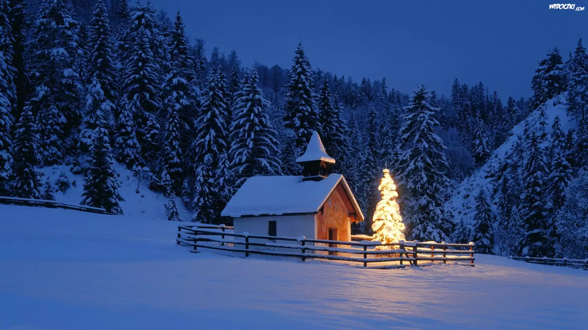 Zima, Dom, Las, Choinka, Boże Narodzenie
