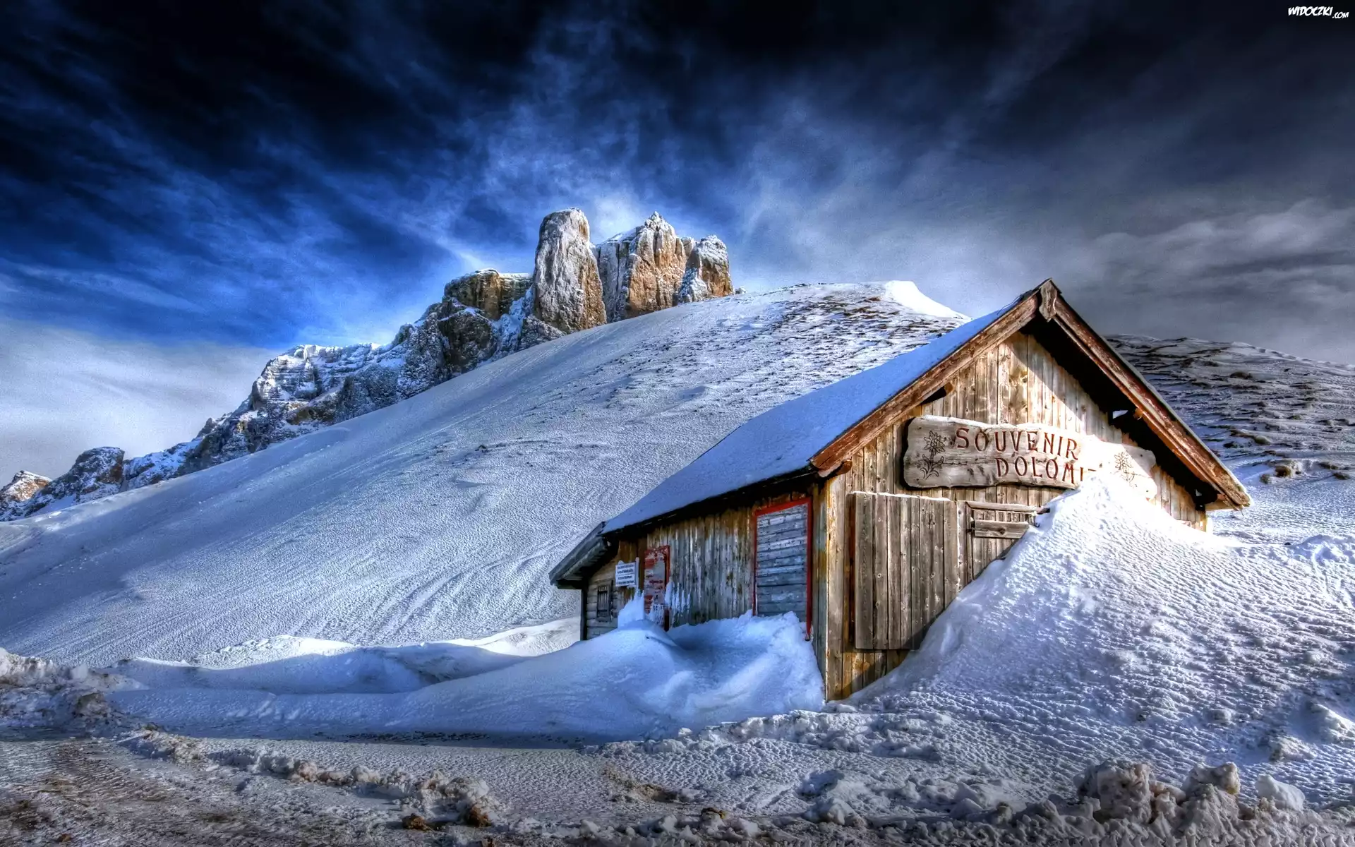 Zdjęcia, Zima, Góry, Chata, Śnieg
