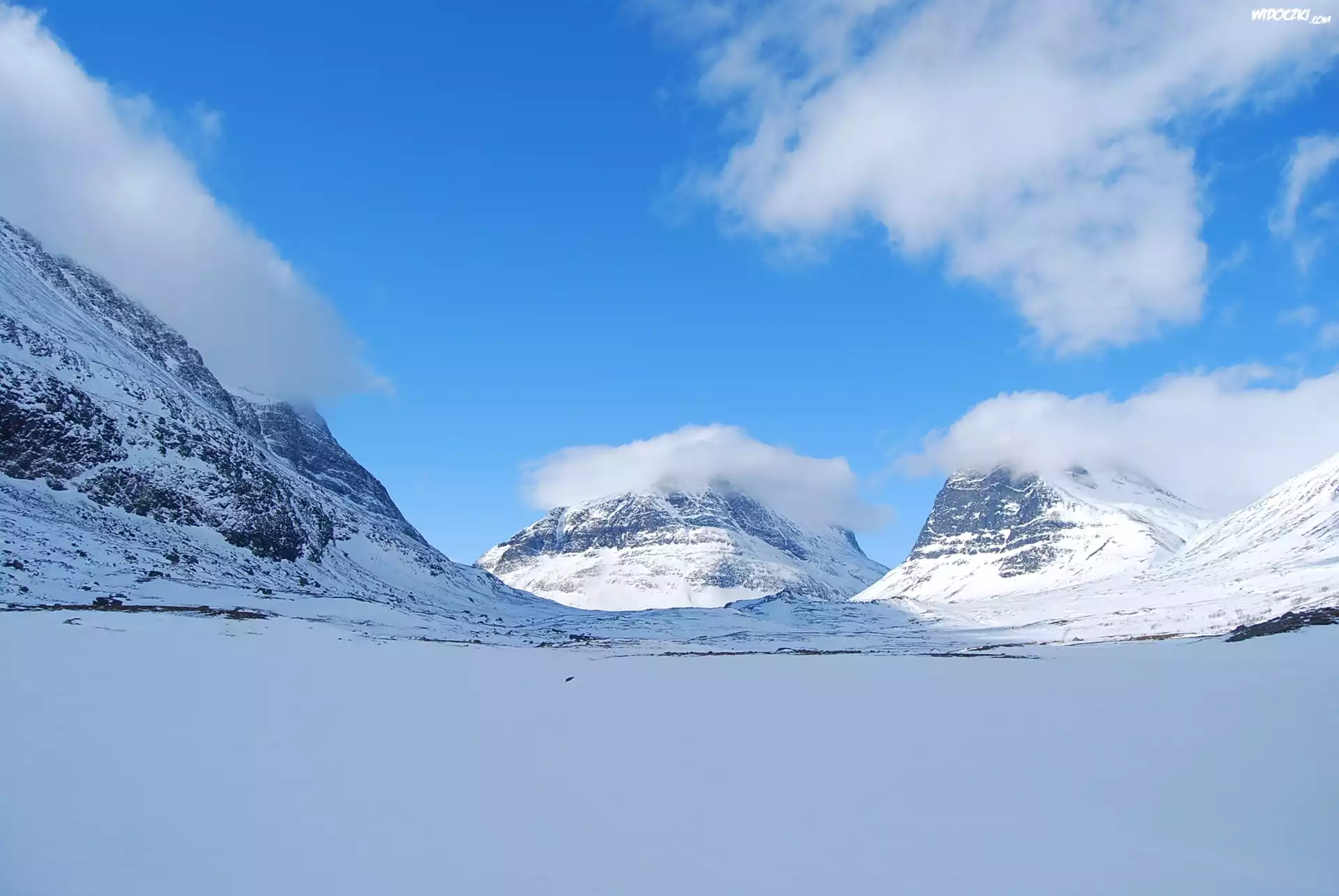 Zdjęcia, Zima, Góry, Chmurki, Laponia