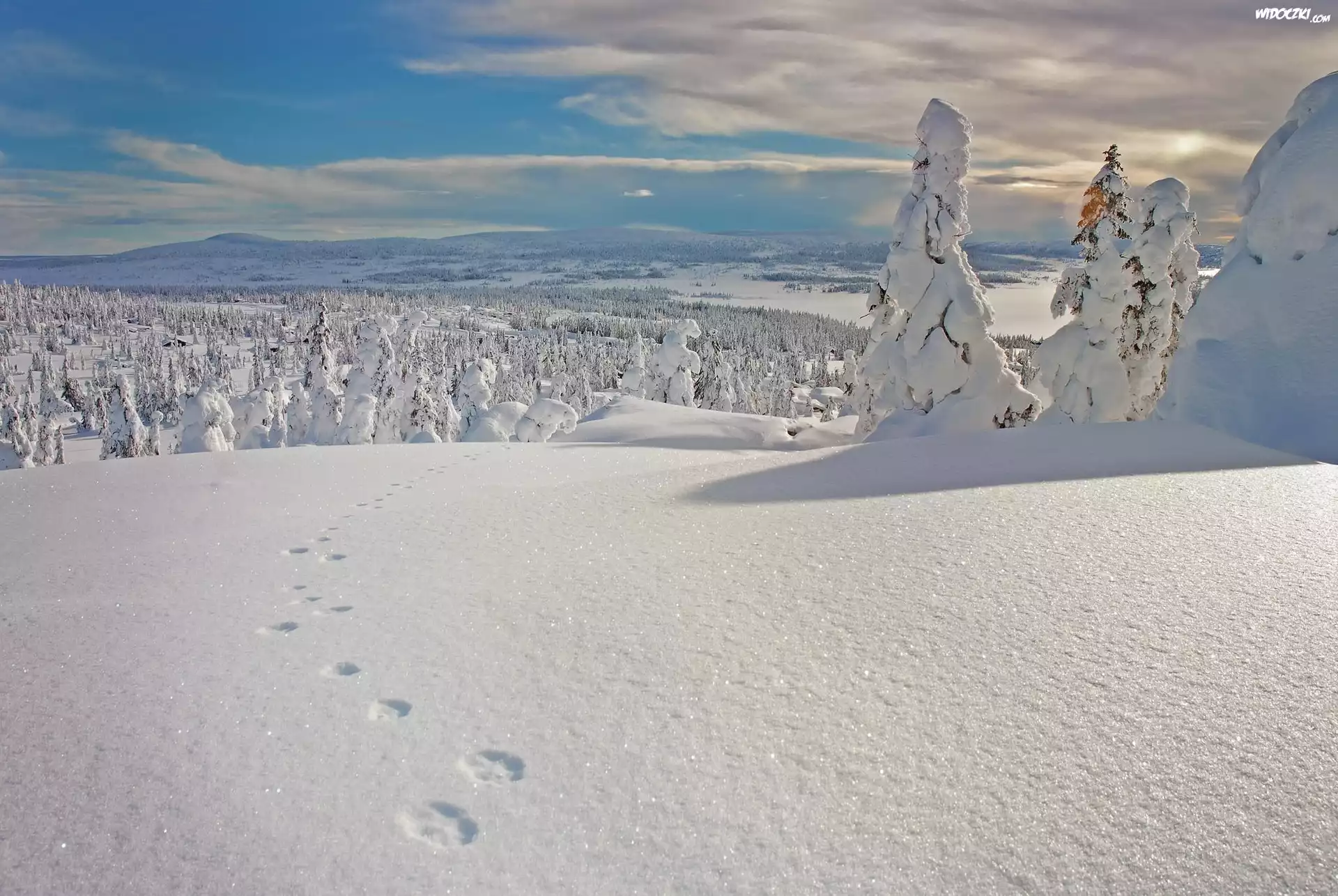 Zdjęcia, Zima, Las, Chmury, Wzgórza