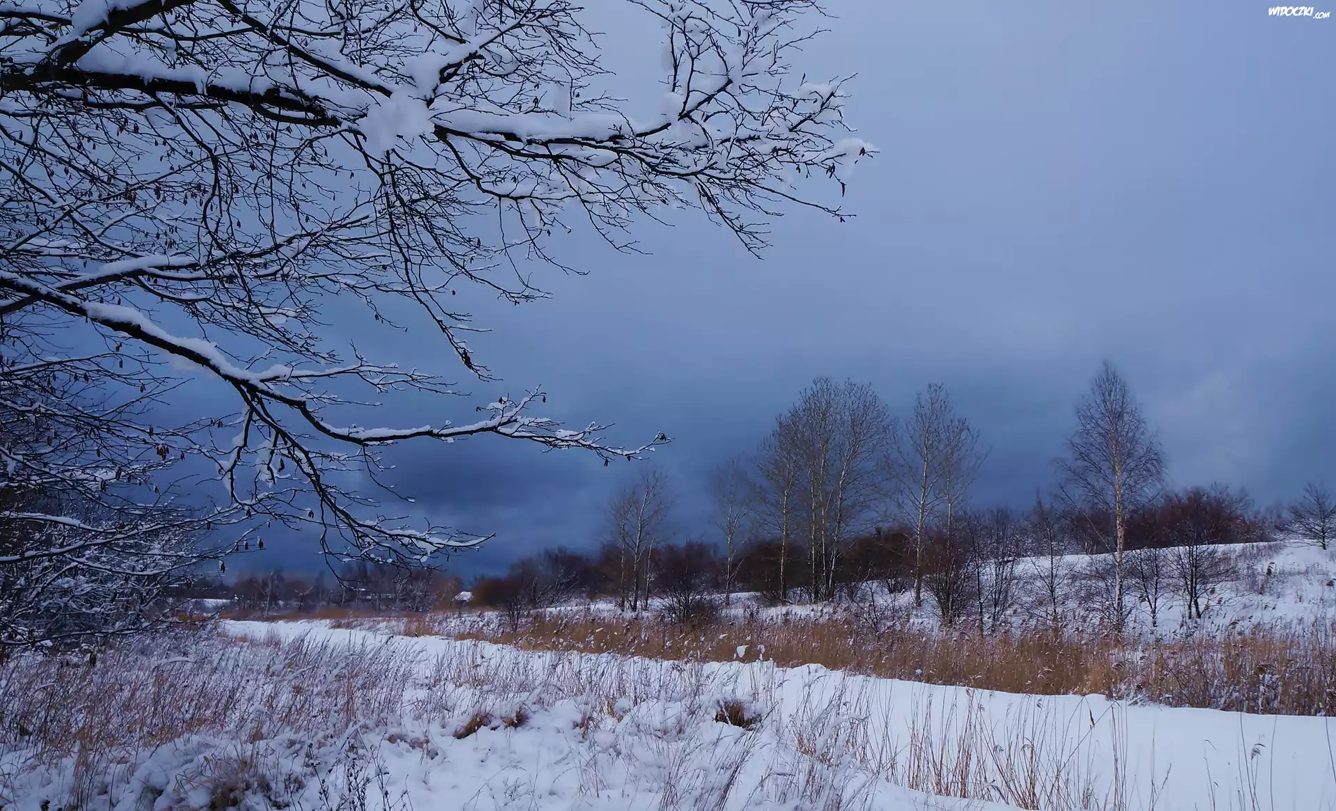 Zdjęcia, Zima, Drzewa, Gałęzie, Śnieg, Ciemnie, Chmury