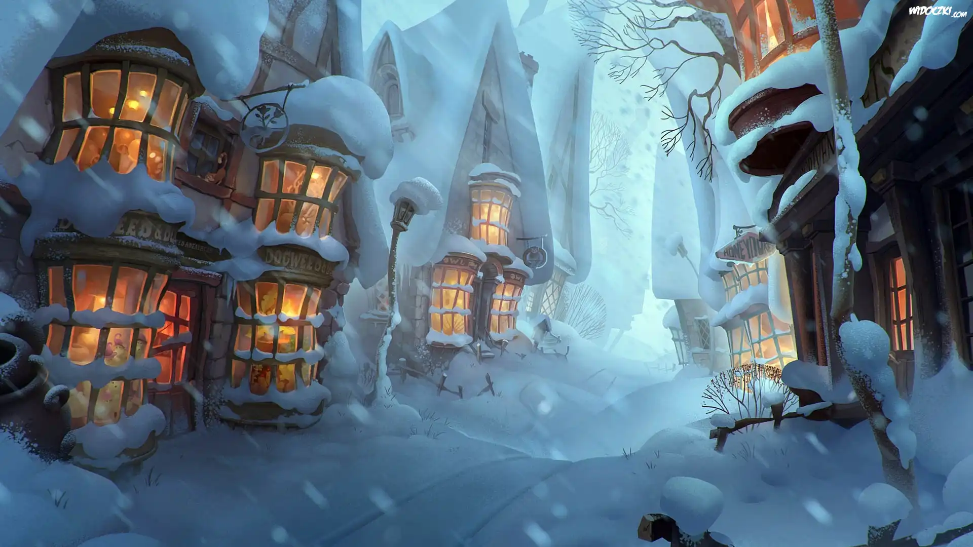 Zima, Åšnieg, Domy, Digital Art