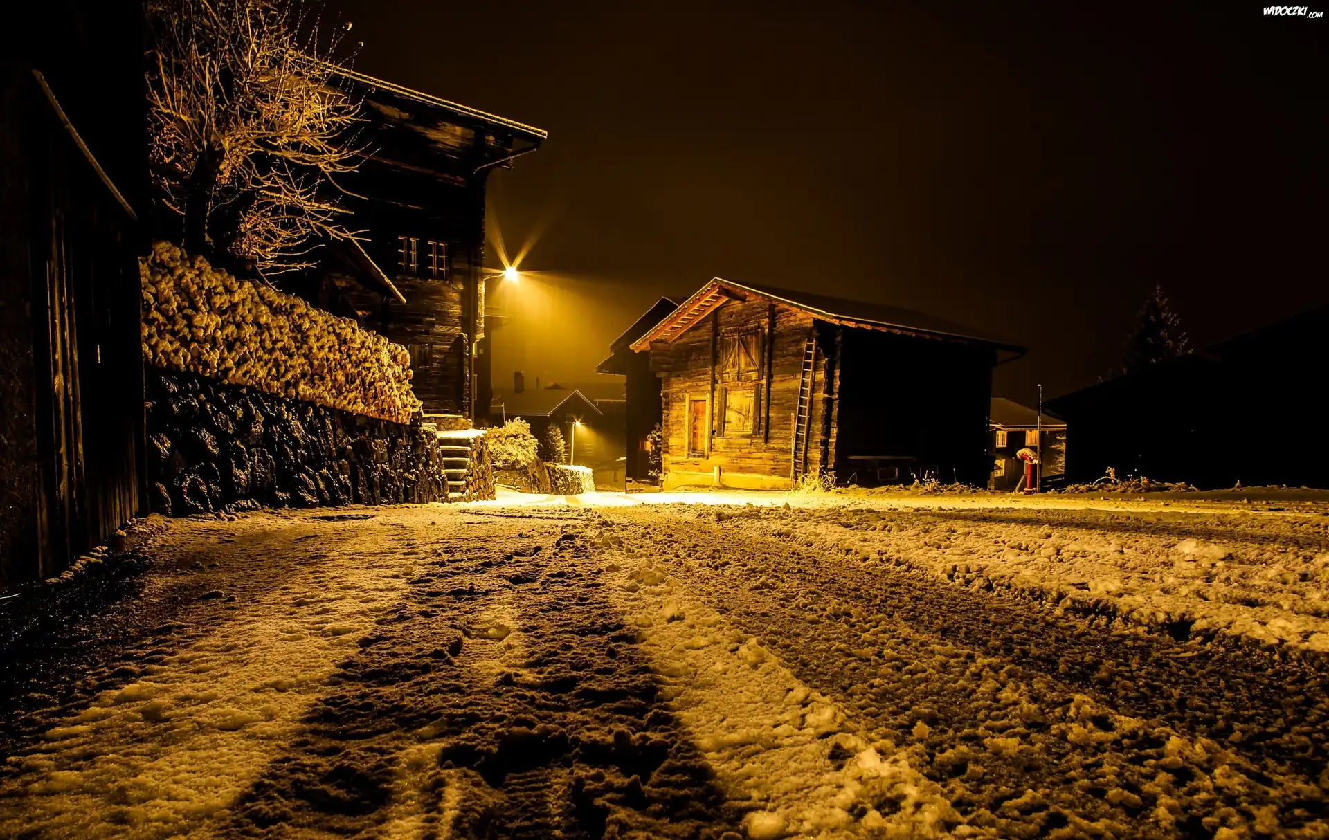 Zima, Drewniany, Dom, Noc