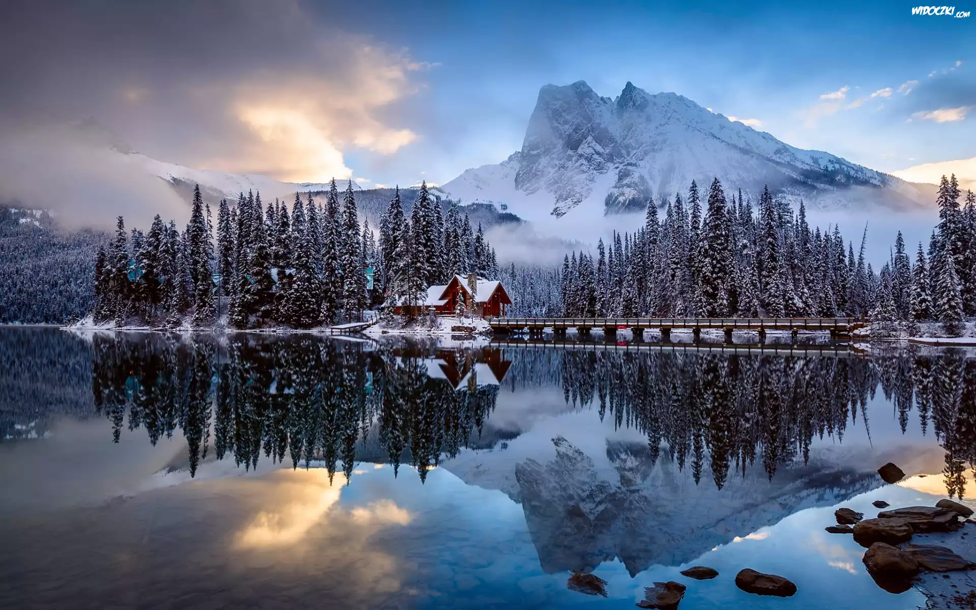 Zdjęcia, Zima, Góry, Drzewa, Dom, Most