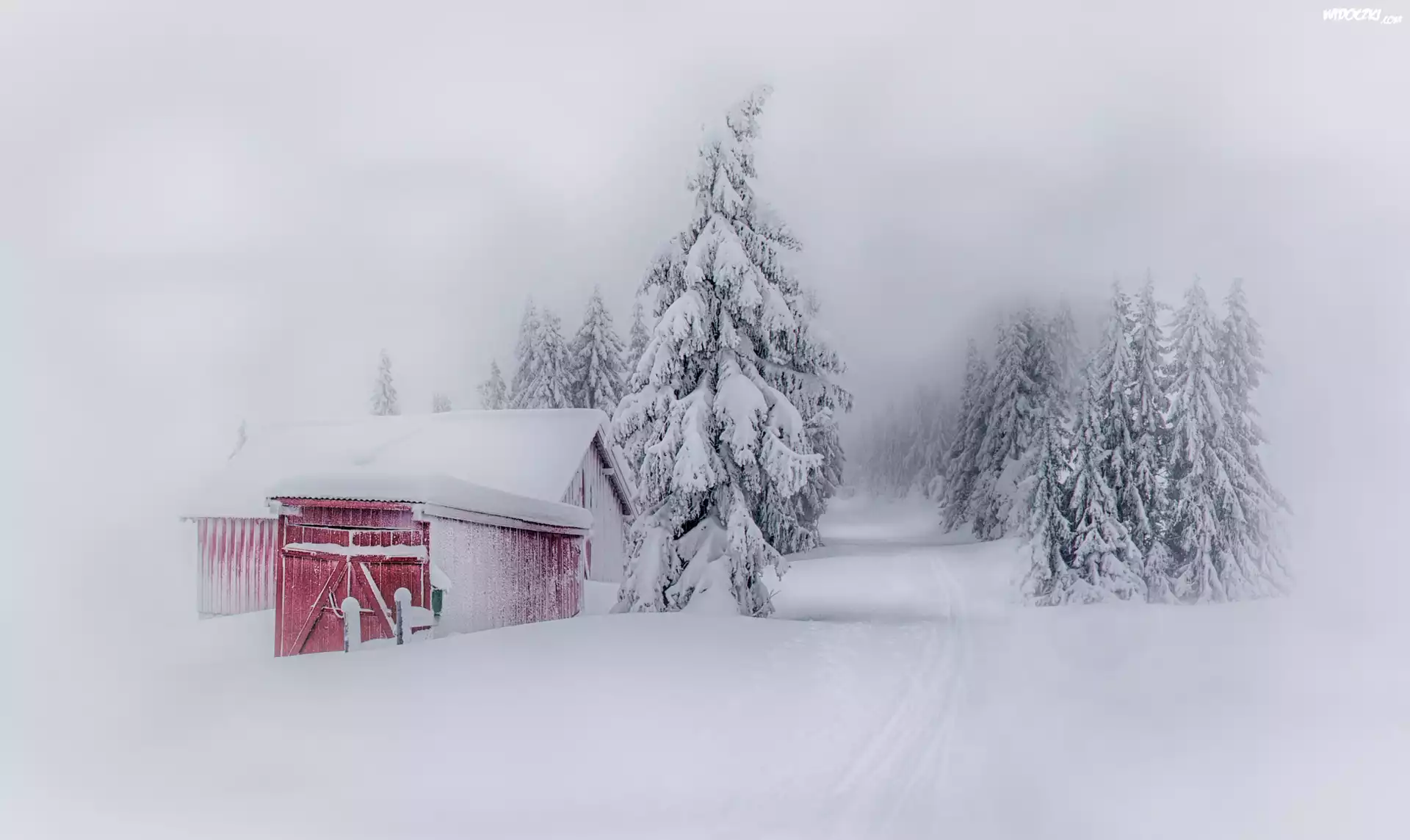 Zdjęcia, Zima, Drzewa, Dom, Świerki