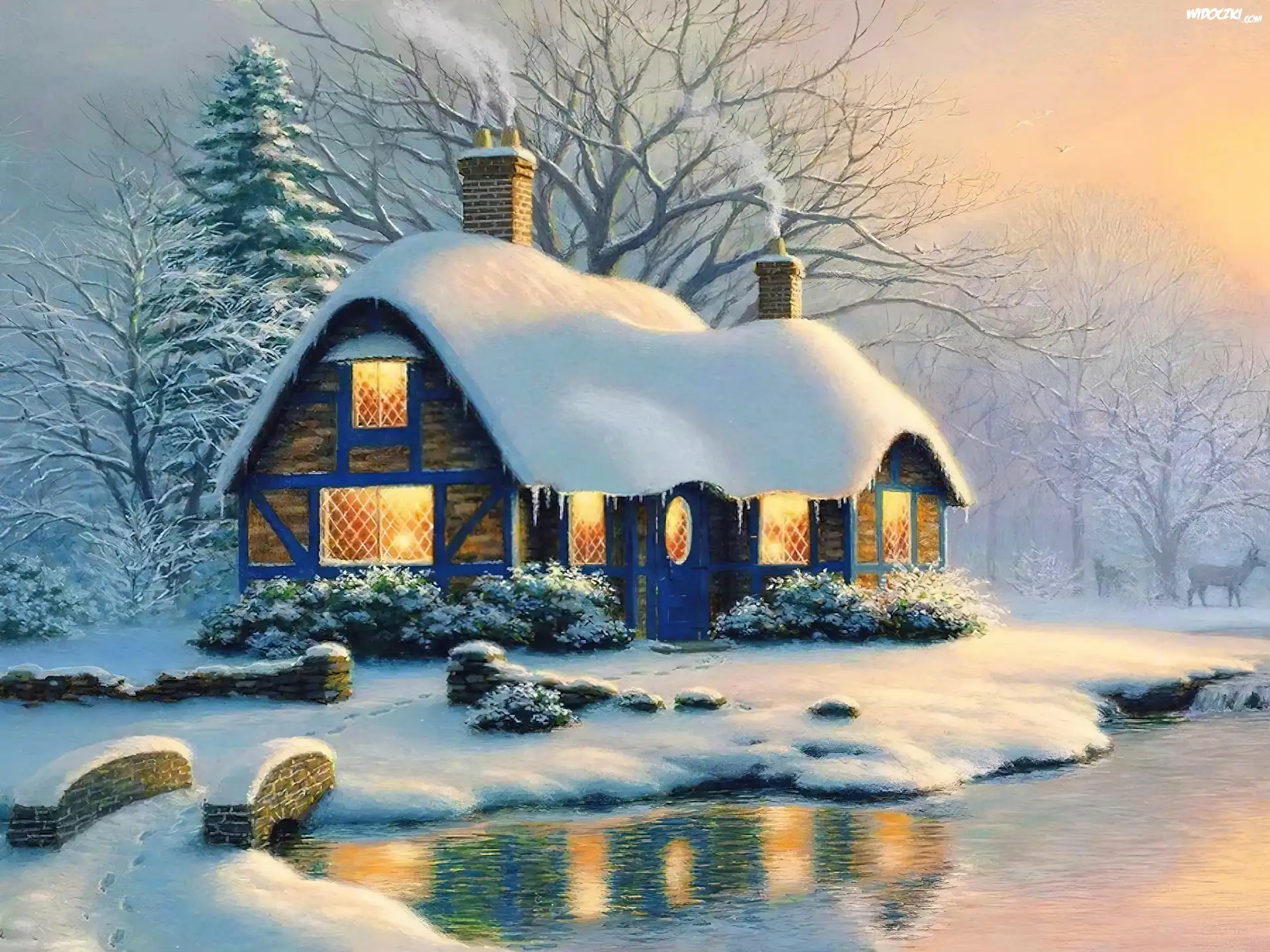 Zdj臋cia, Dom, Zima, Malarstwo