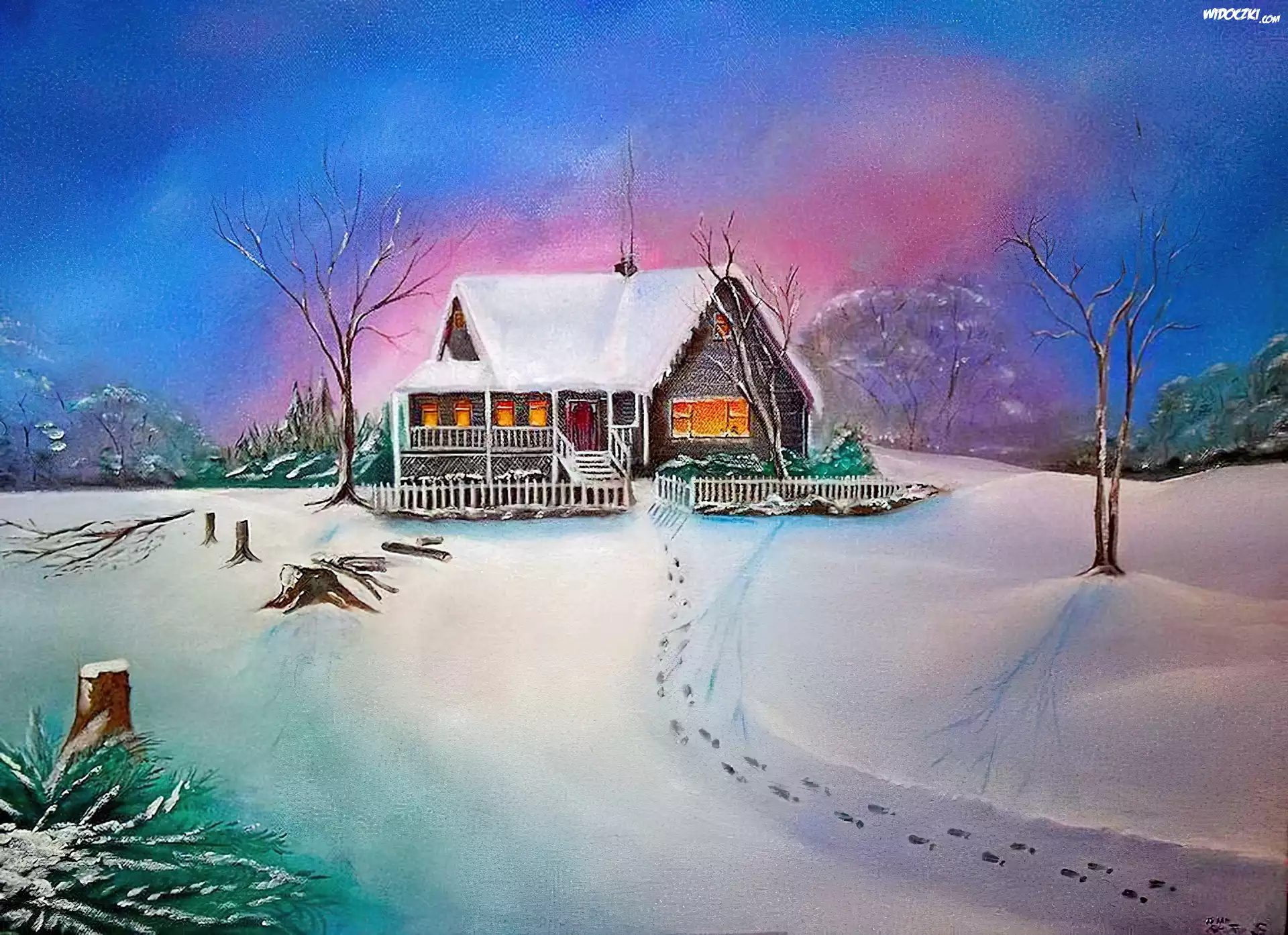 Zdjęcia, Dom, Zima, Śnieg
