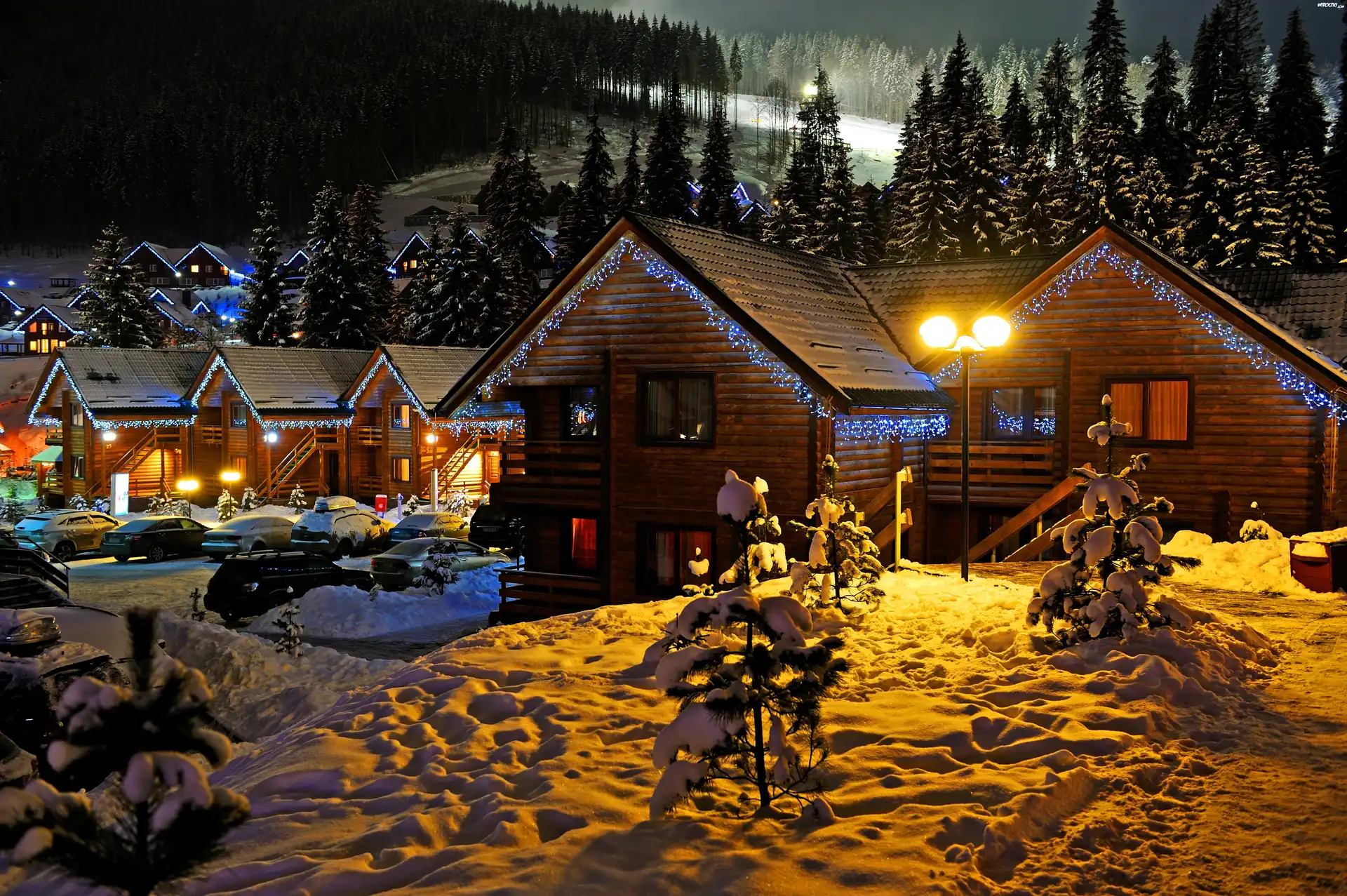 Zdjęcia, Zima, Lasy, Domy, Święta