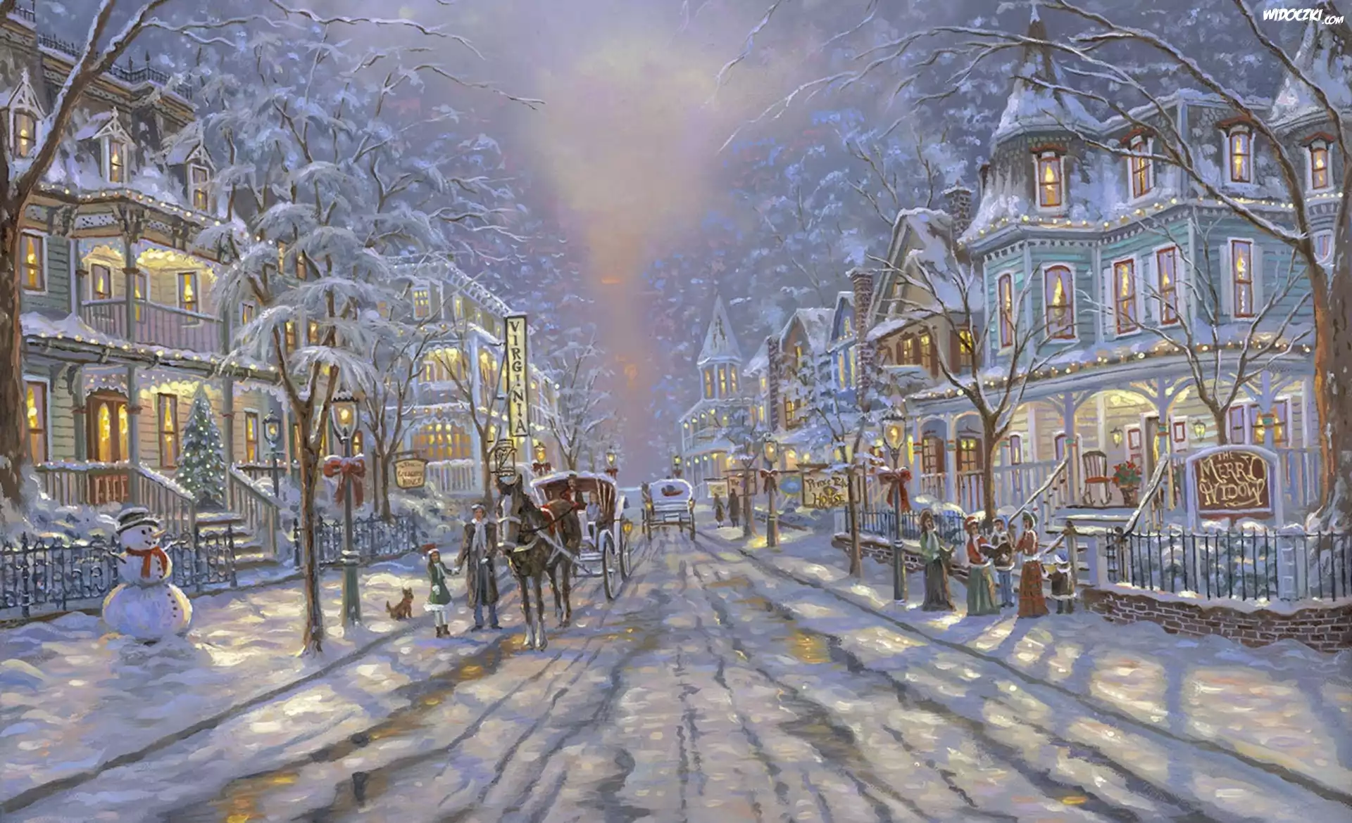 Zdjęcia, Zima, Śnieg, Dorożka, Domki