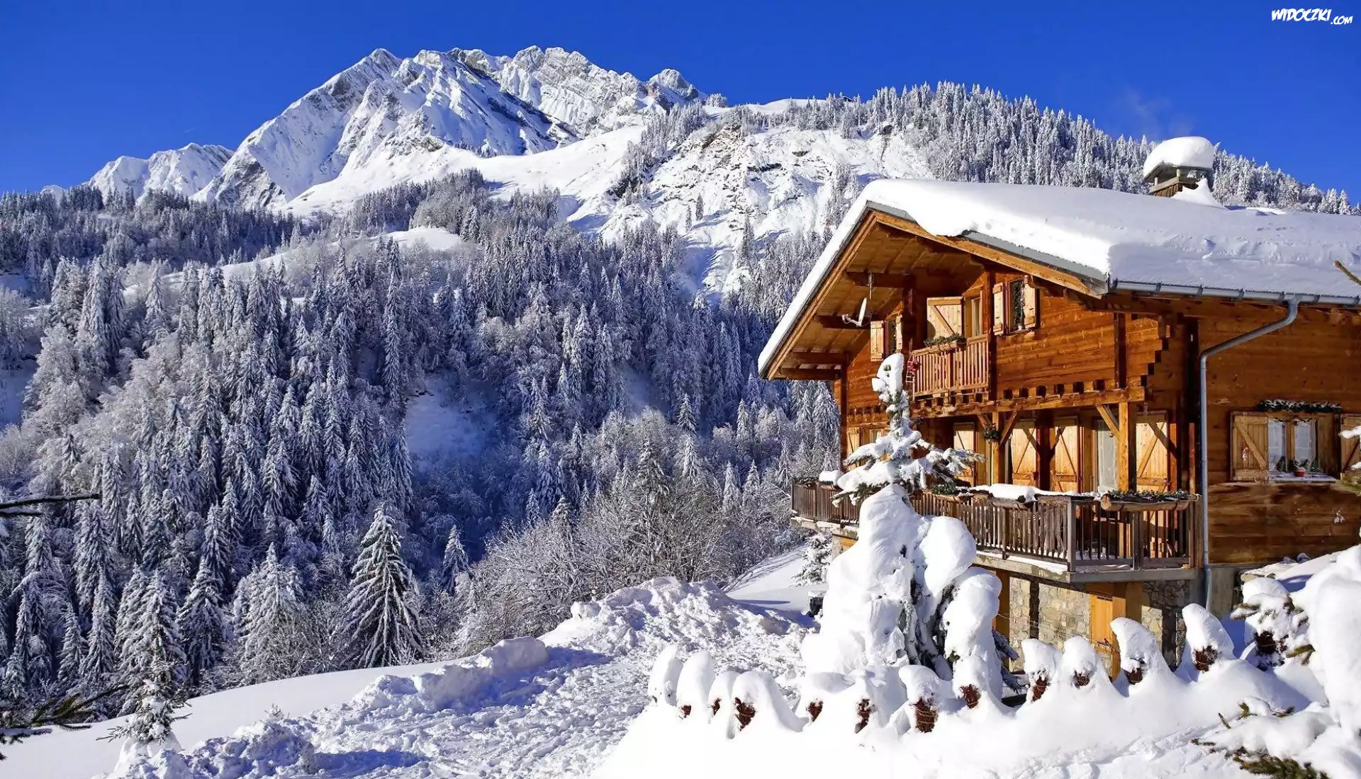 Zdjęcia, Zima, Góry, Drewniany, Dom