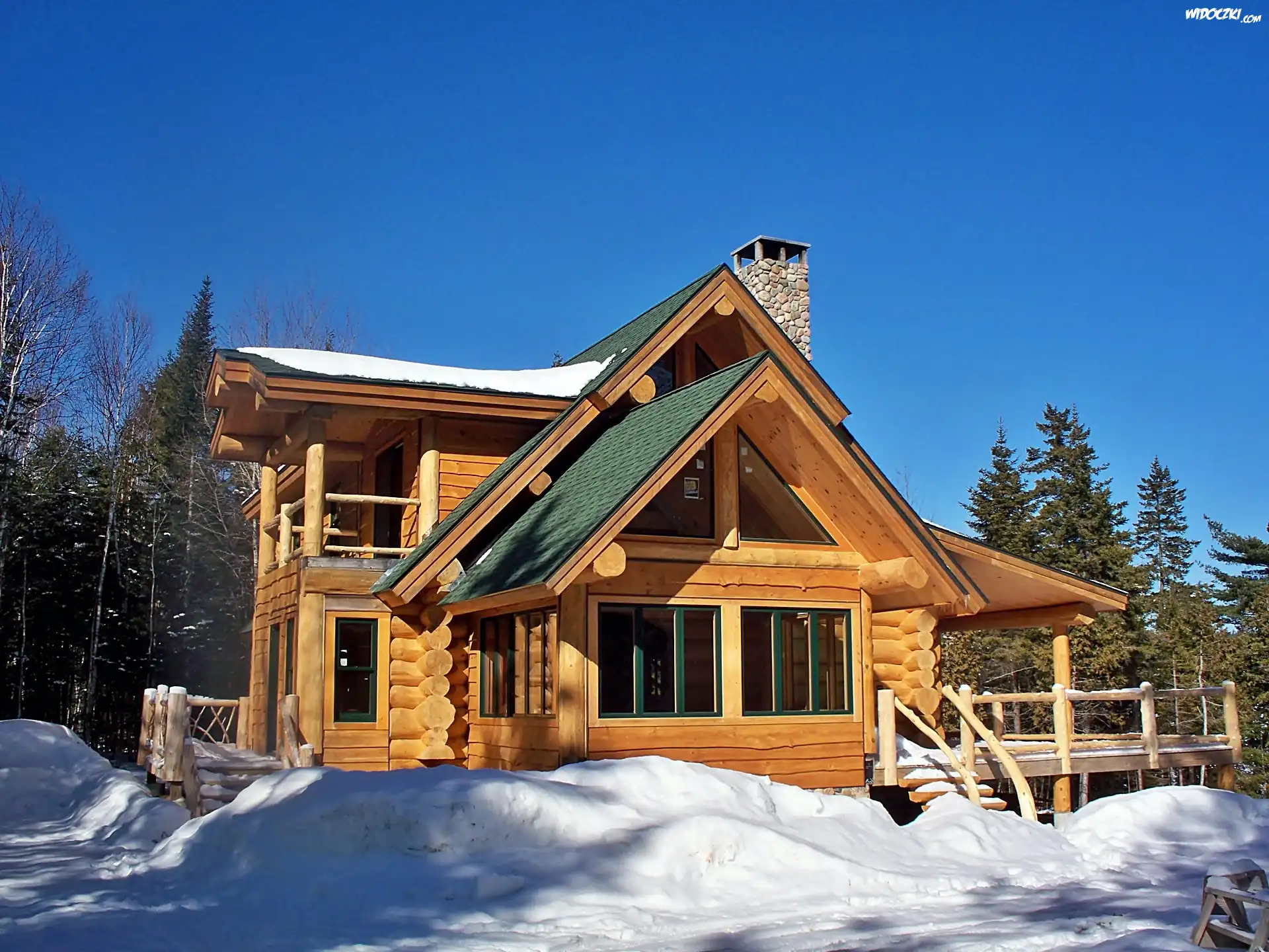 Zdjęcia, Zima, Las, Drewniany, Dom