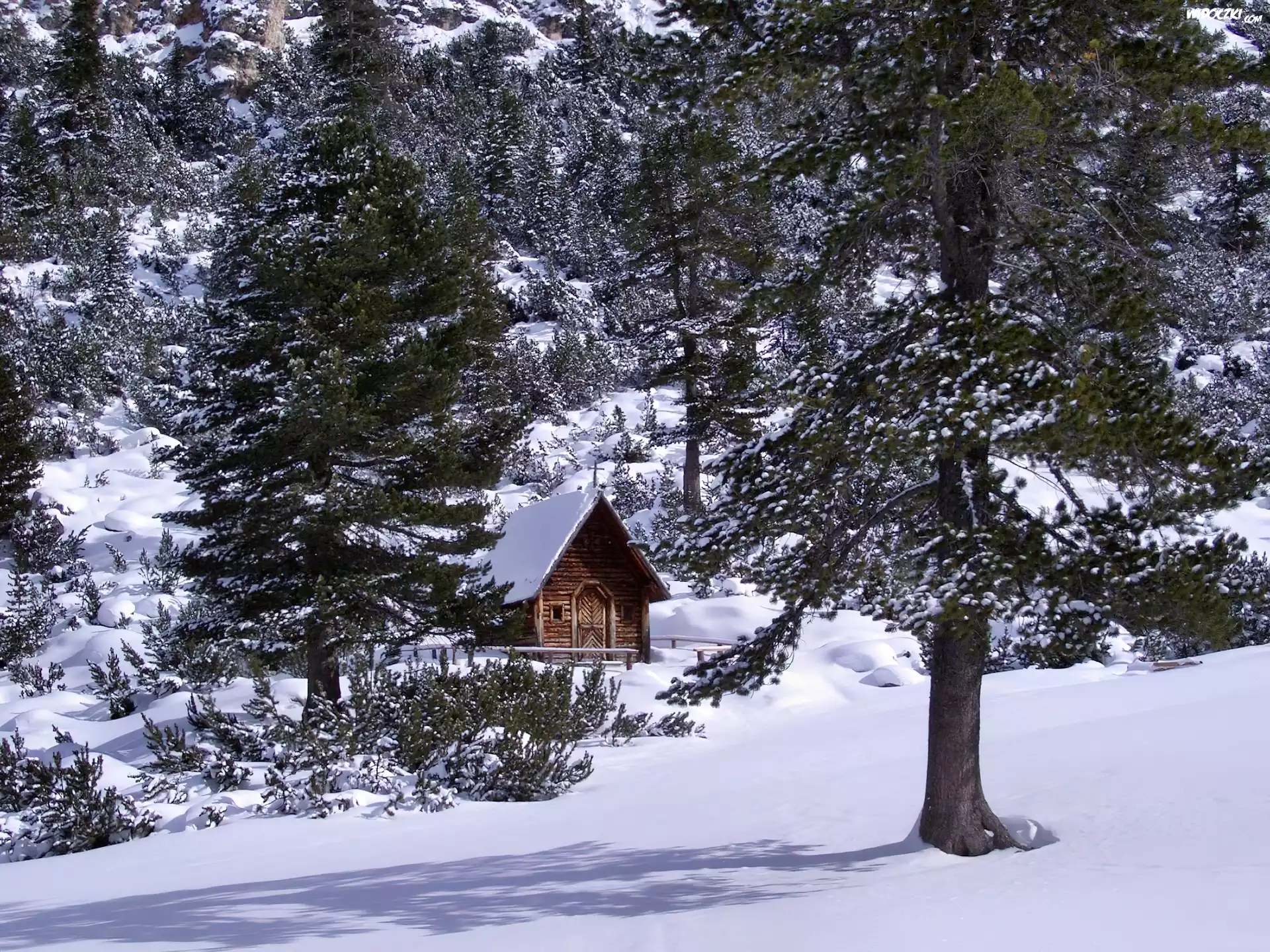 Zdjęcia, Zima, Las, Drewniany, Kościółek