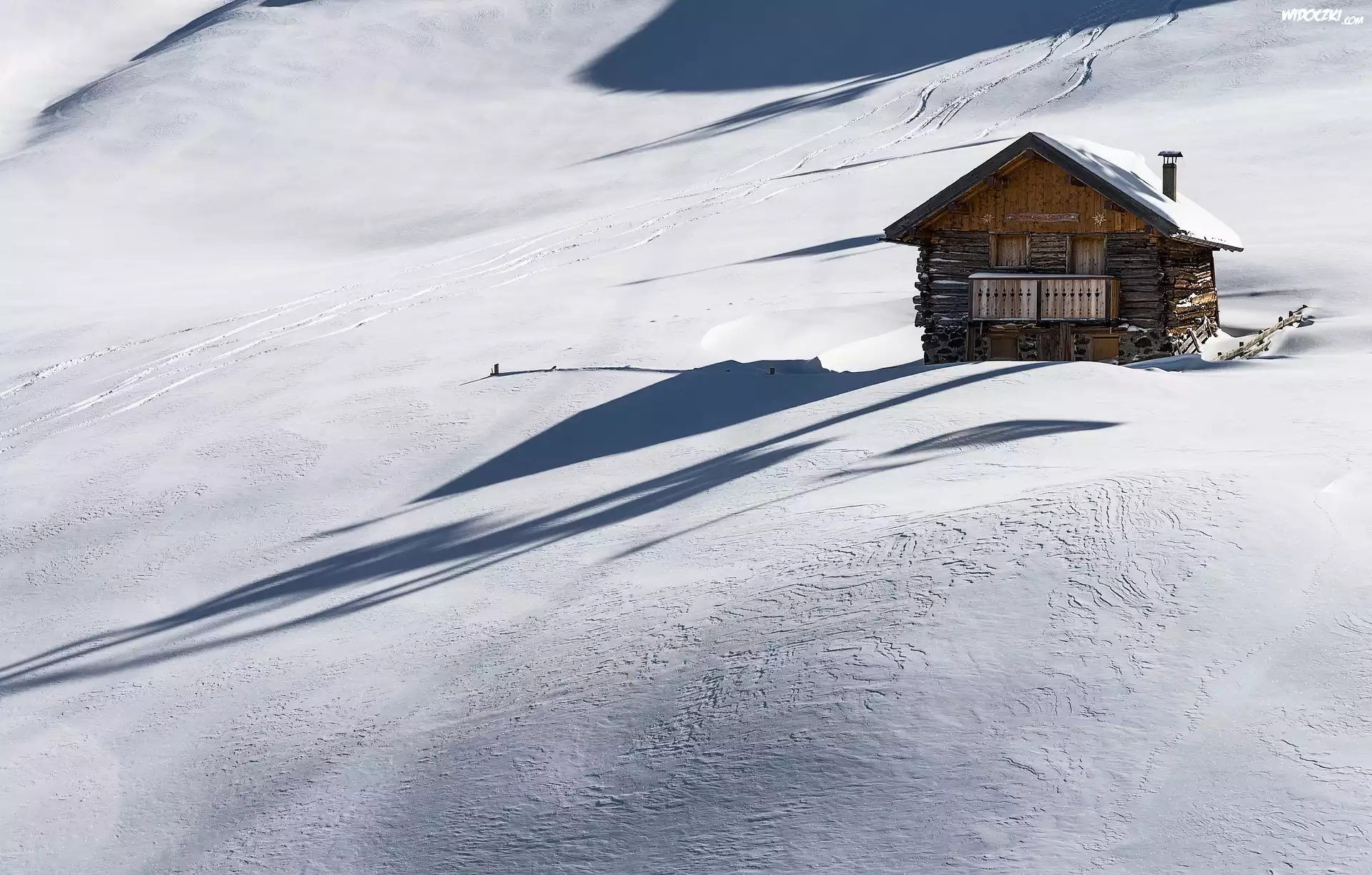 Zdjęcia, Zima, Śnieg, Drewniany, Domek