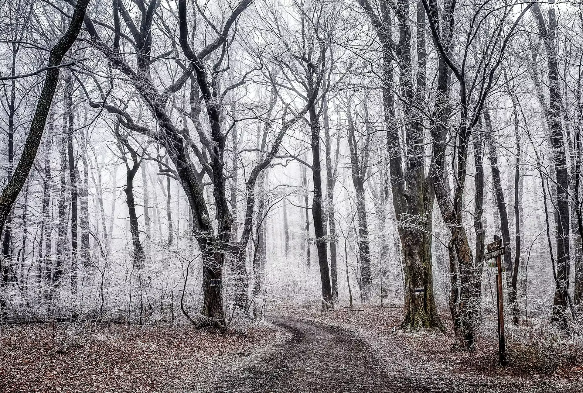Zima, Las, Droga, Drzewa