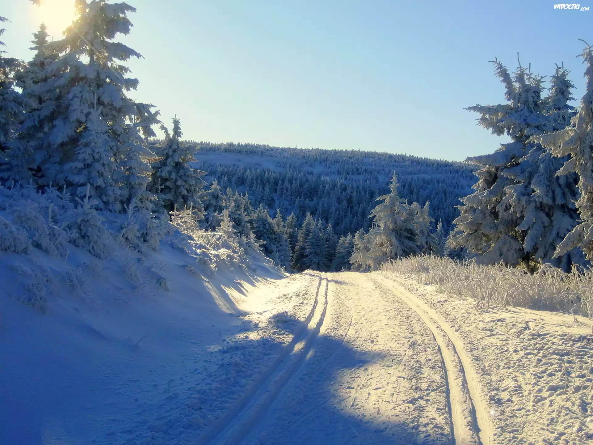 Zdjęcia, Zima, Las, Droga, Śnieg