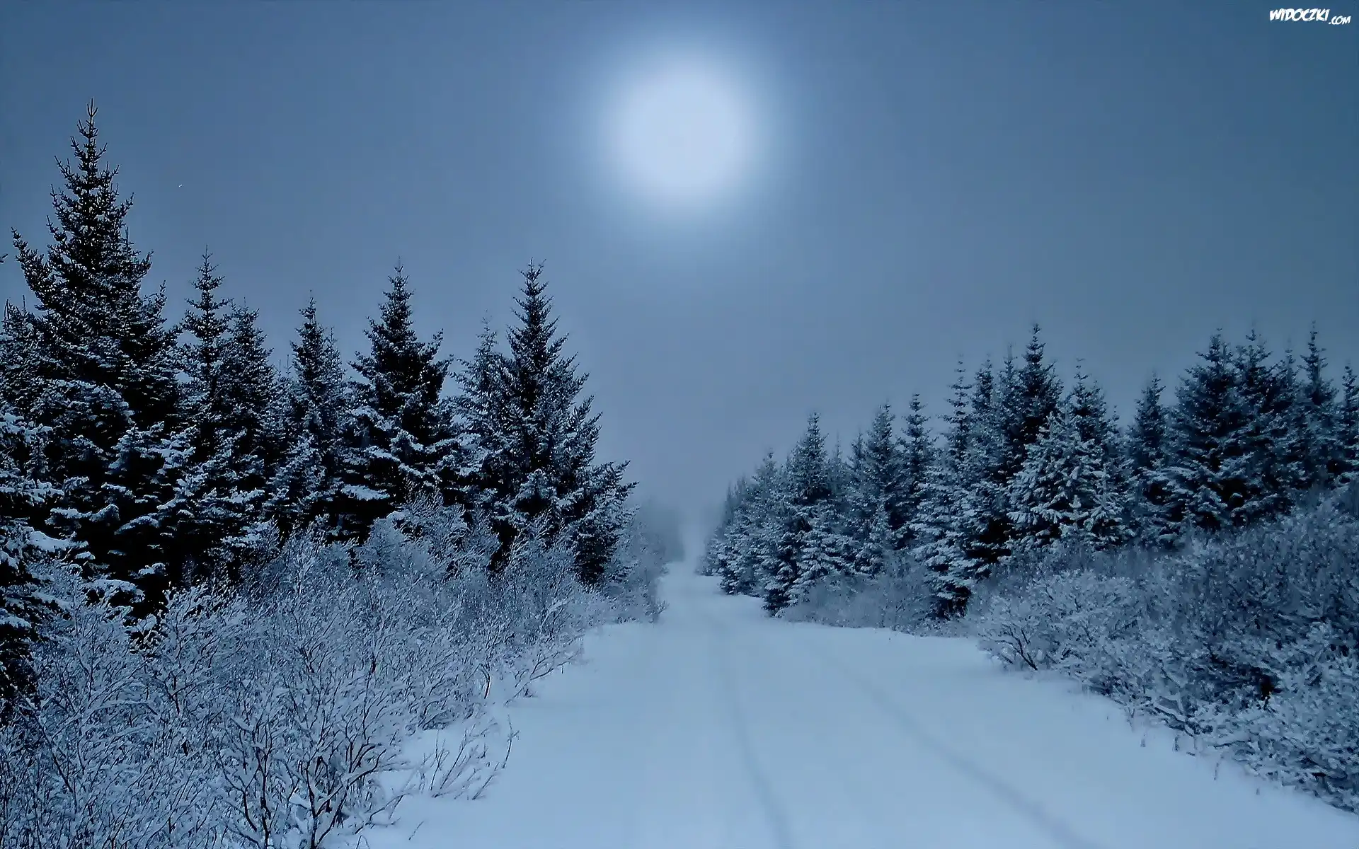 Zdjęcia, Zima, Śnieg, Droga, Las
