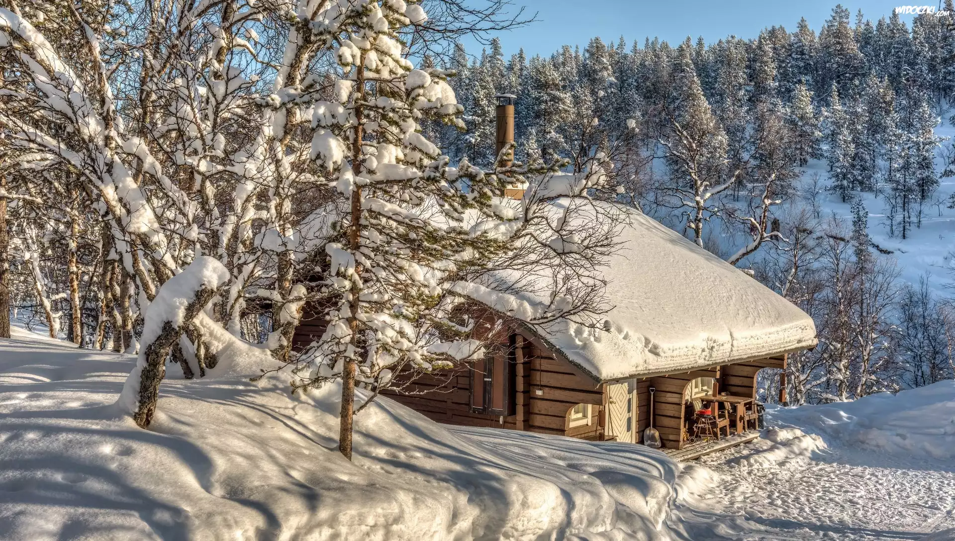 Zdjęcia, Zima, Dom, Drzewa, Ośnieżone