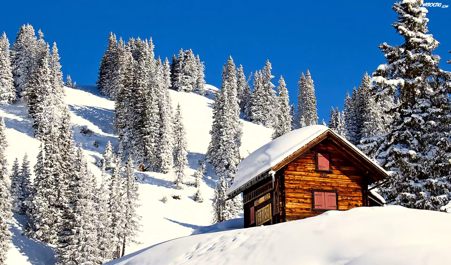 Zdjęcia, Zima, Śnieg, Domek, Drzewa, Góry