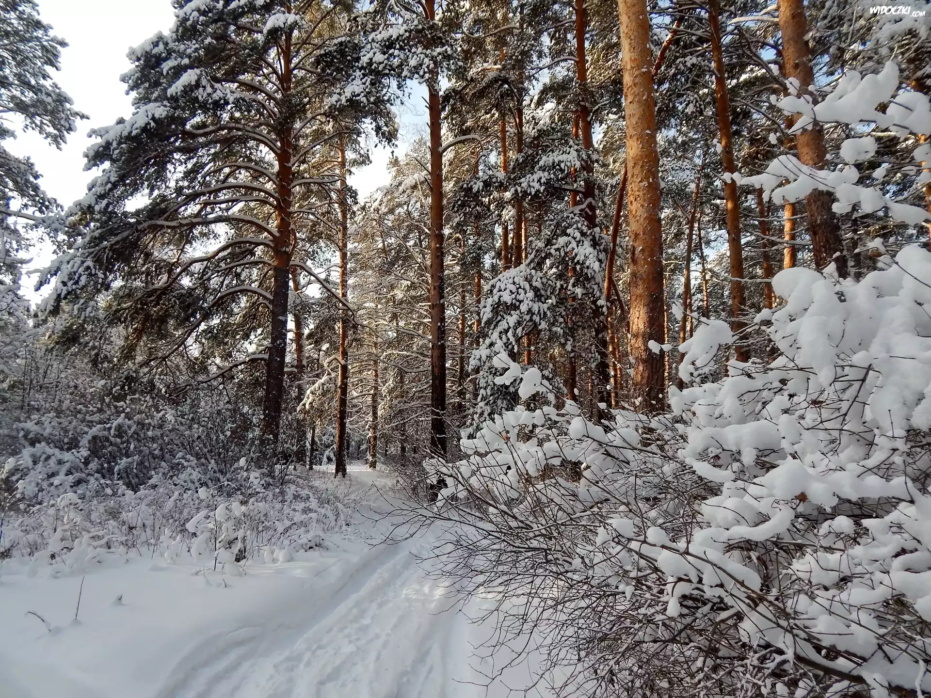 Zdjęcia, Zima, Las, Droga, Ośnieżone, Drzewa, Śnieg