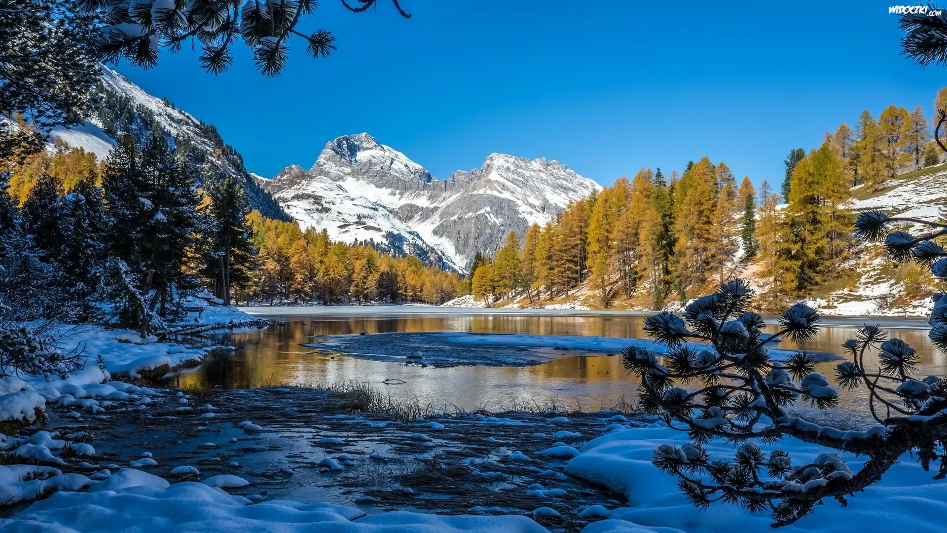 Zdjęcia, Zima, Jezioro, Góry, Drzewa, Śnieg