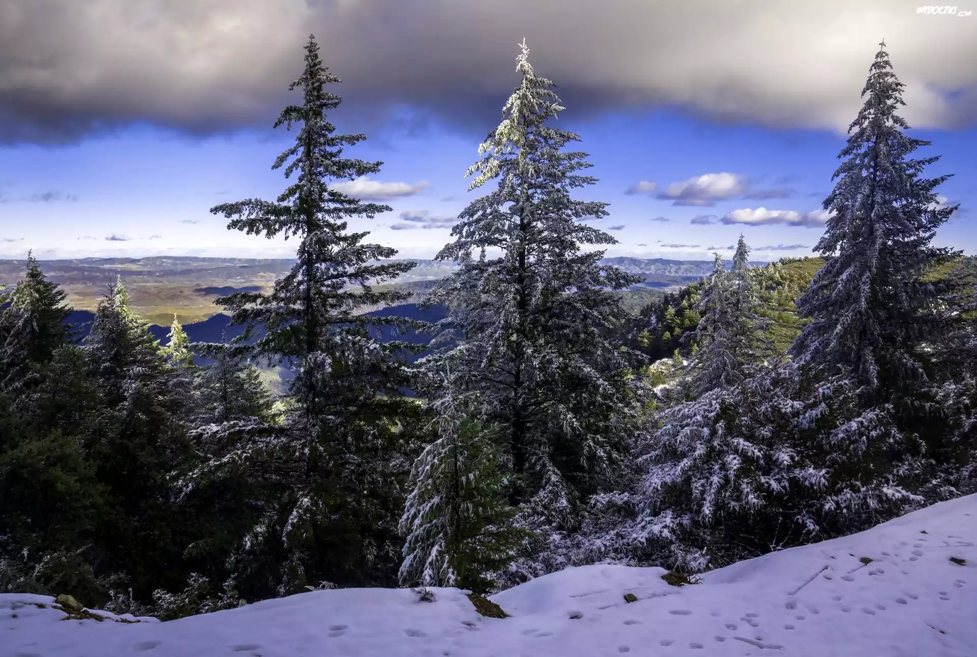 Zima, Śnieg, Góry, Ośnieżone, Drzewa, Niebo