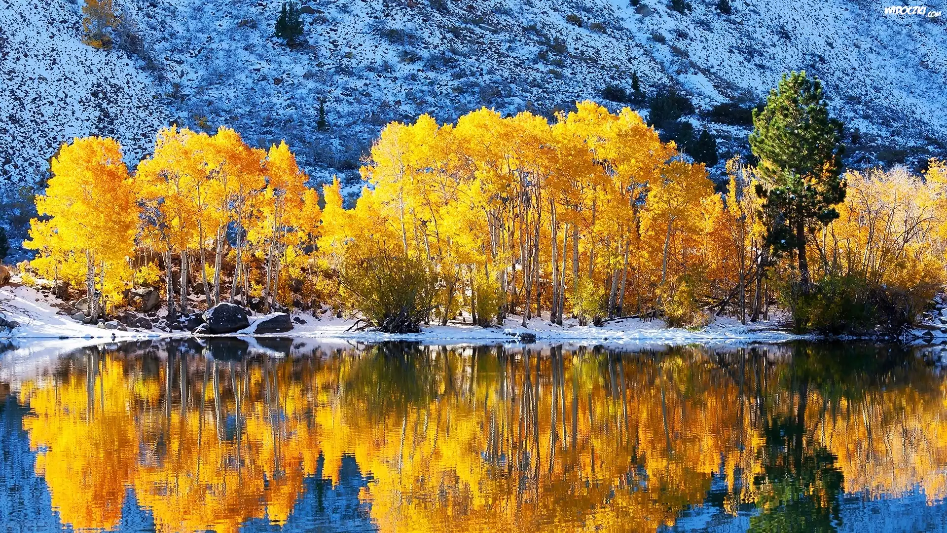 Zdjęcia, Zima, Jezioro, Drzewa, Odbicie