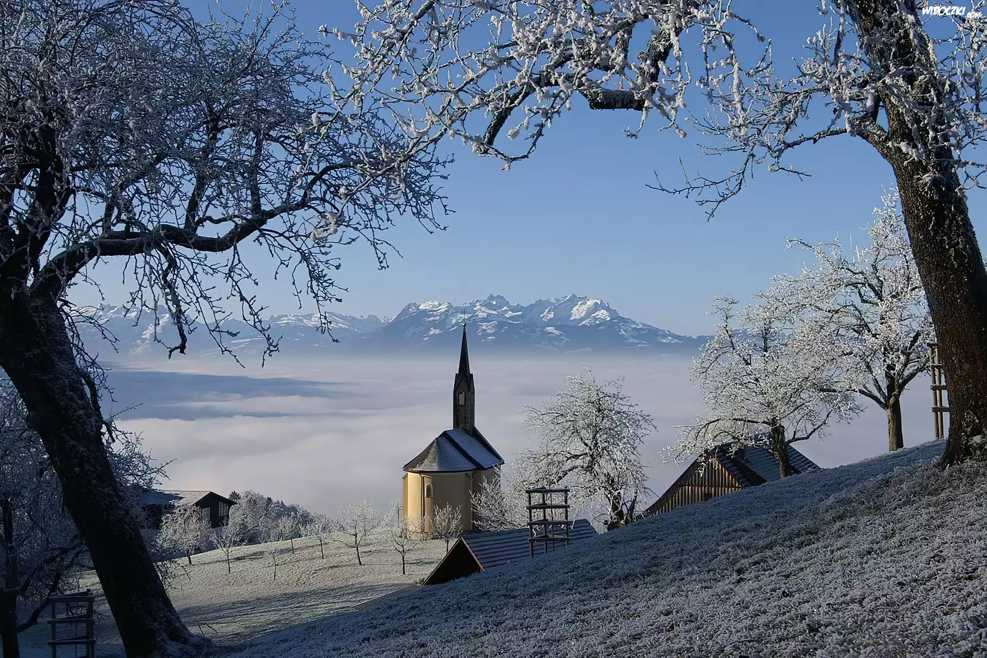 Zdjęcia, Zima, Kościółek, Drzewa, Austria