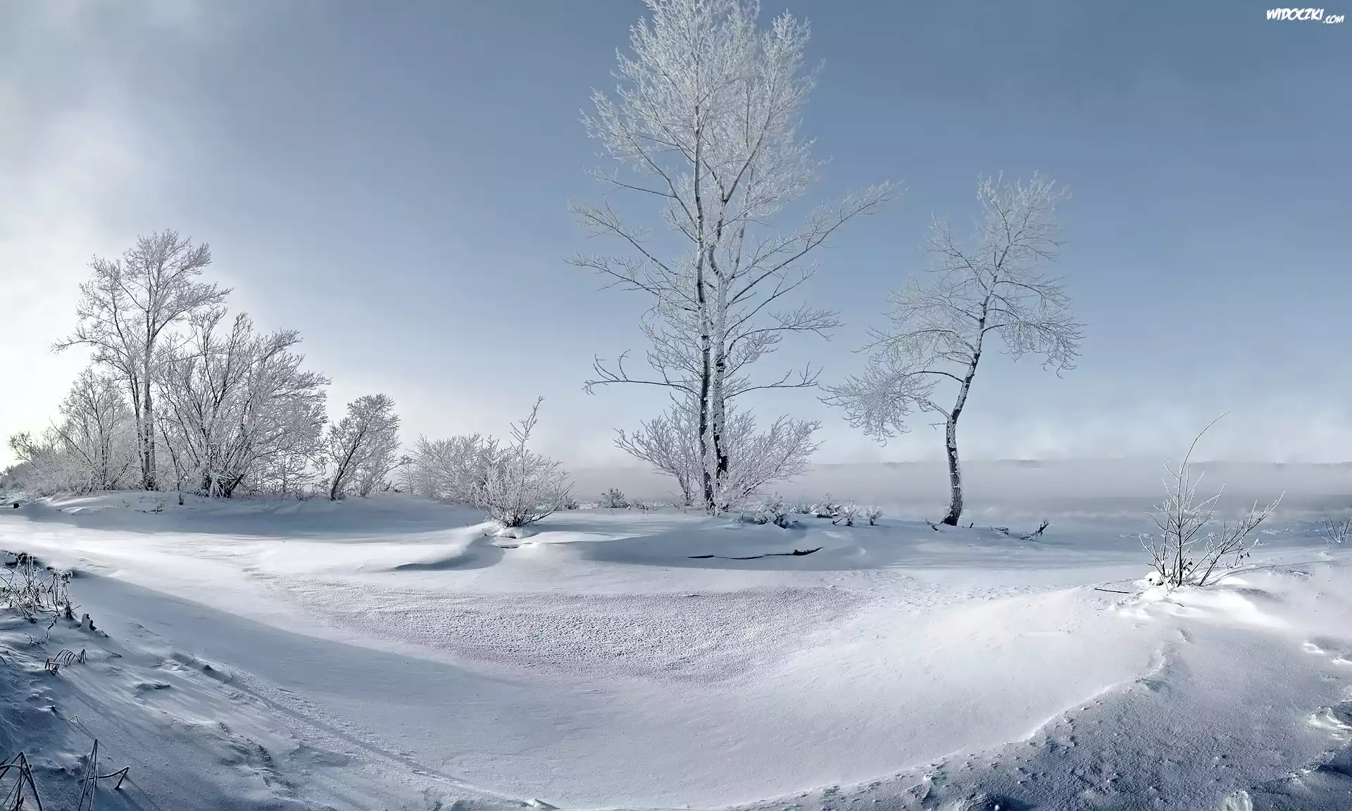 Zdjęcia, Zima, Krzewy, Drzewa, Śnieg