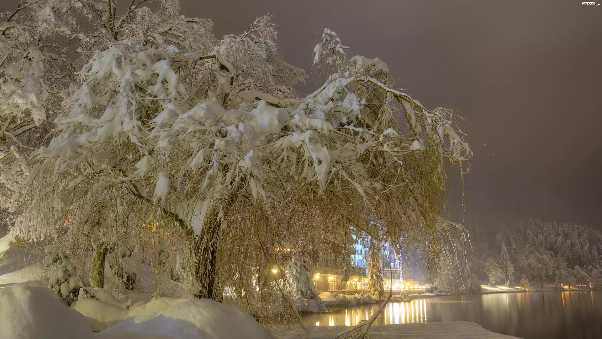 Zdjęcia, Zima, Jezioro, Las, Drzewa, Słowenia