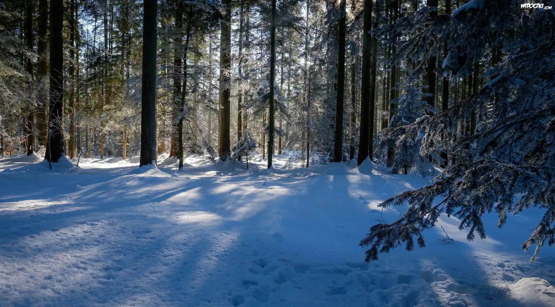 Zdjęcia, Zima, Las, Drzewa, Śnieg