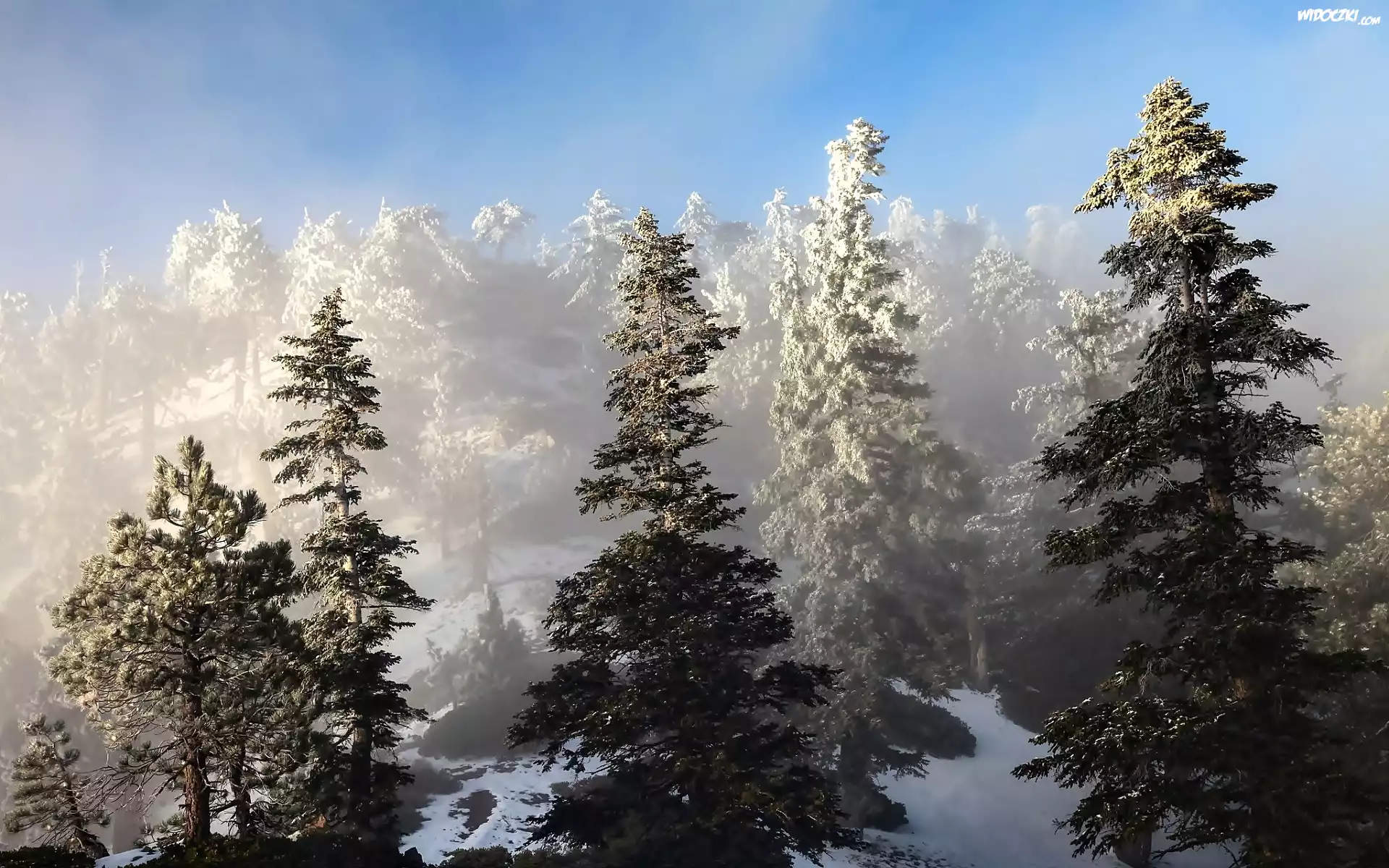 Zima, Åšnieg, Las, Drzewa, Åšwierki