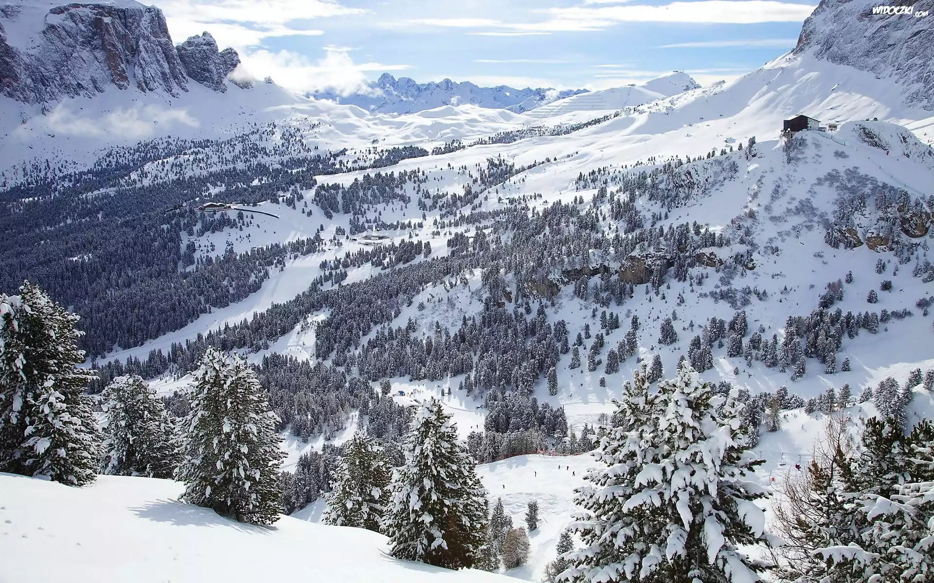 Zdjęcia, Zima, Góry, Lasy, Drzewa, Świerki