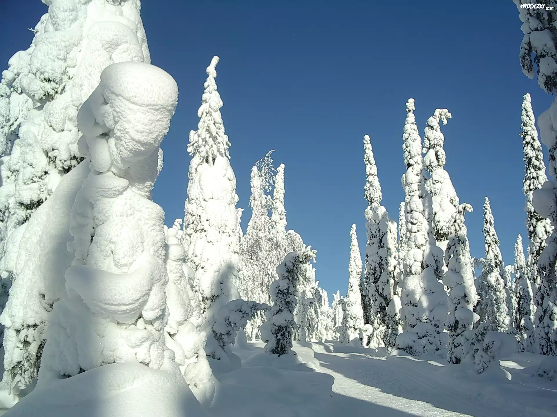 Zdjęcia, Zima, Ośnieżone, Drzewa, Bałwan