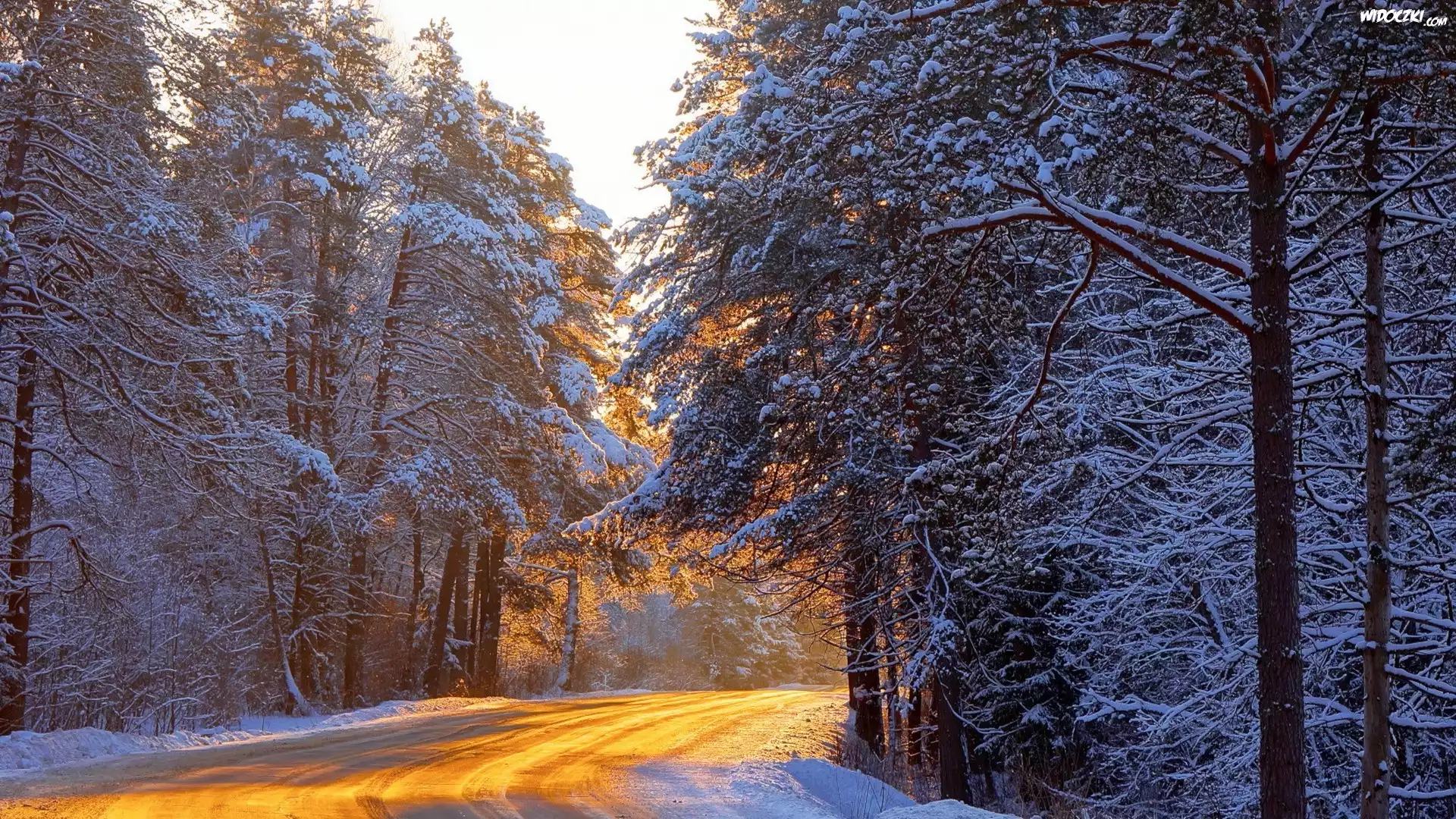 Zdjęcia, Zima, Las, Ośnieżone, Drzewa, Droga