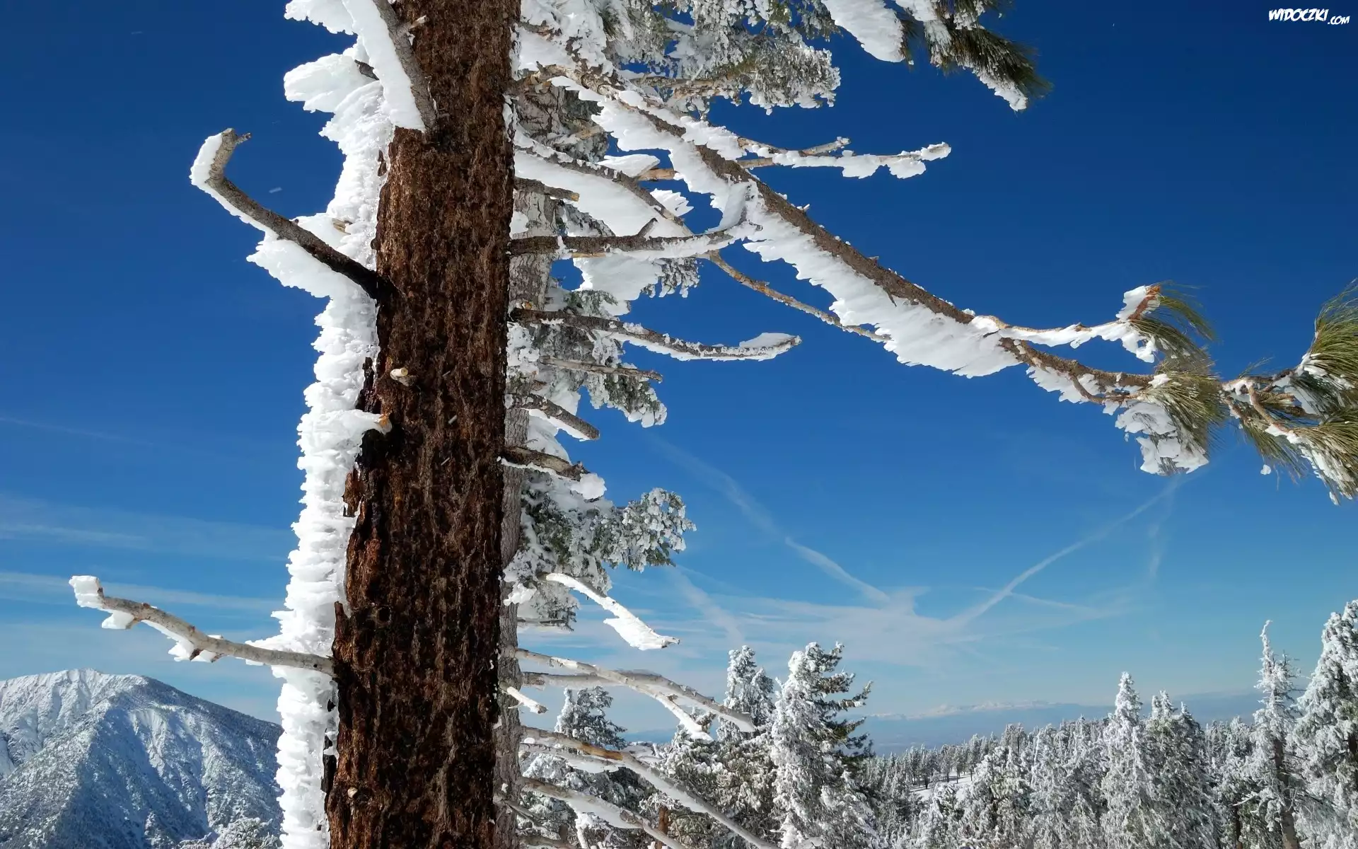 Zdjęcia, Zima, Ośnieżone, Drzewa, Niebo