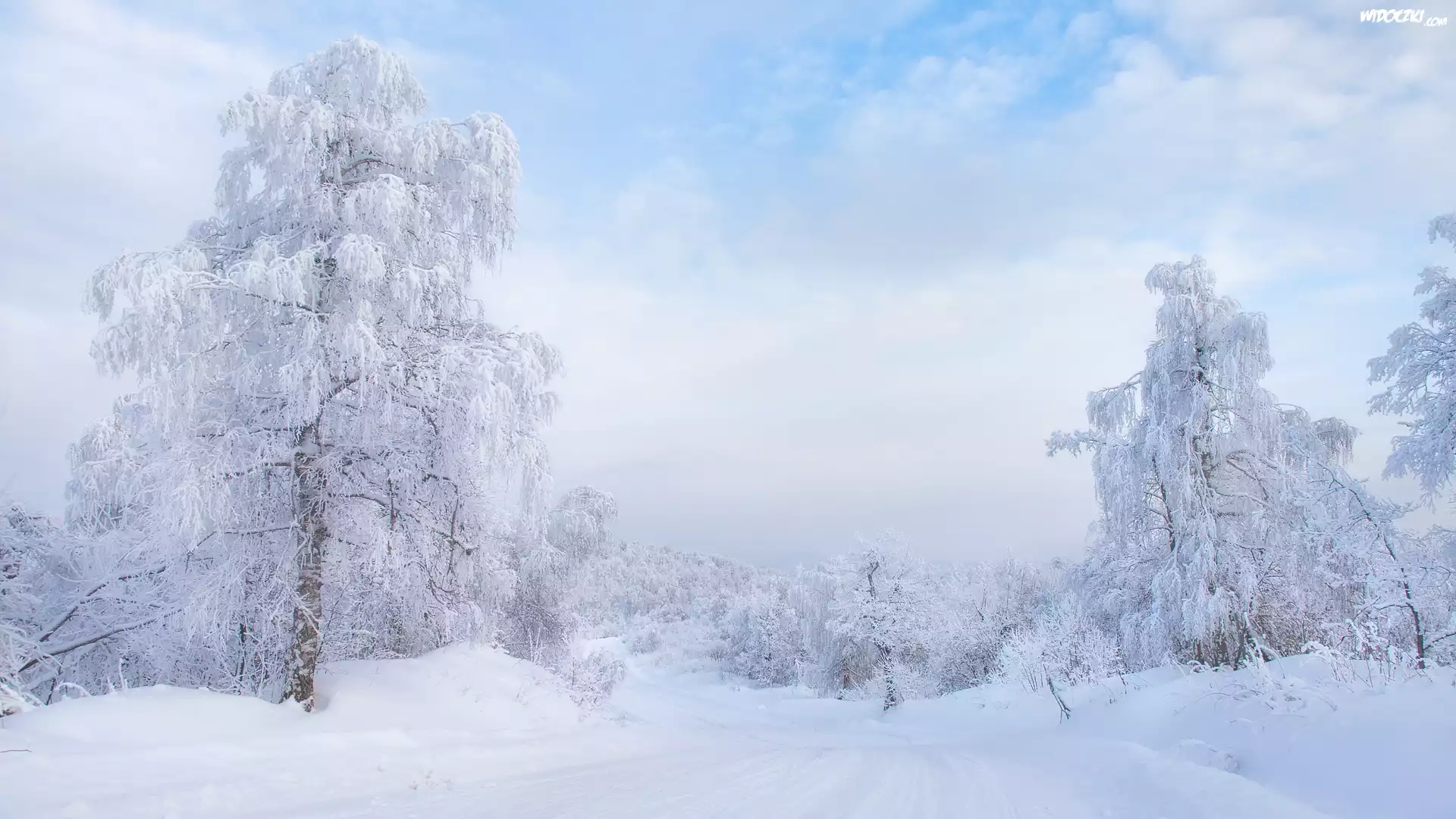 Zima, Śnieg, Ośnieżone, Drzewa, Droga