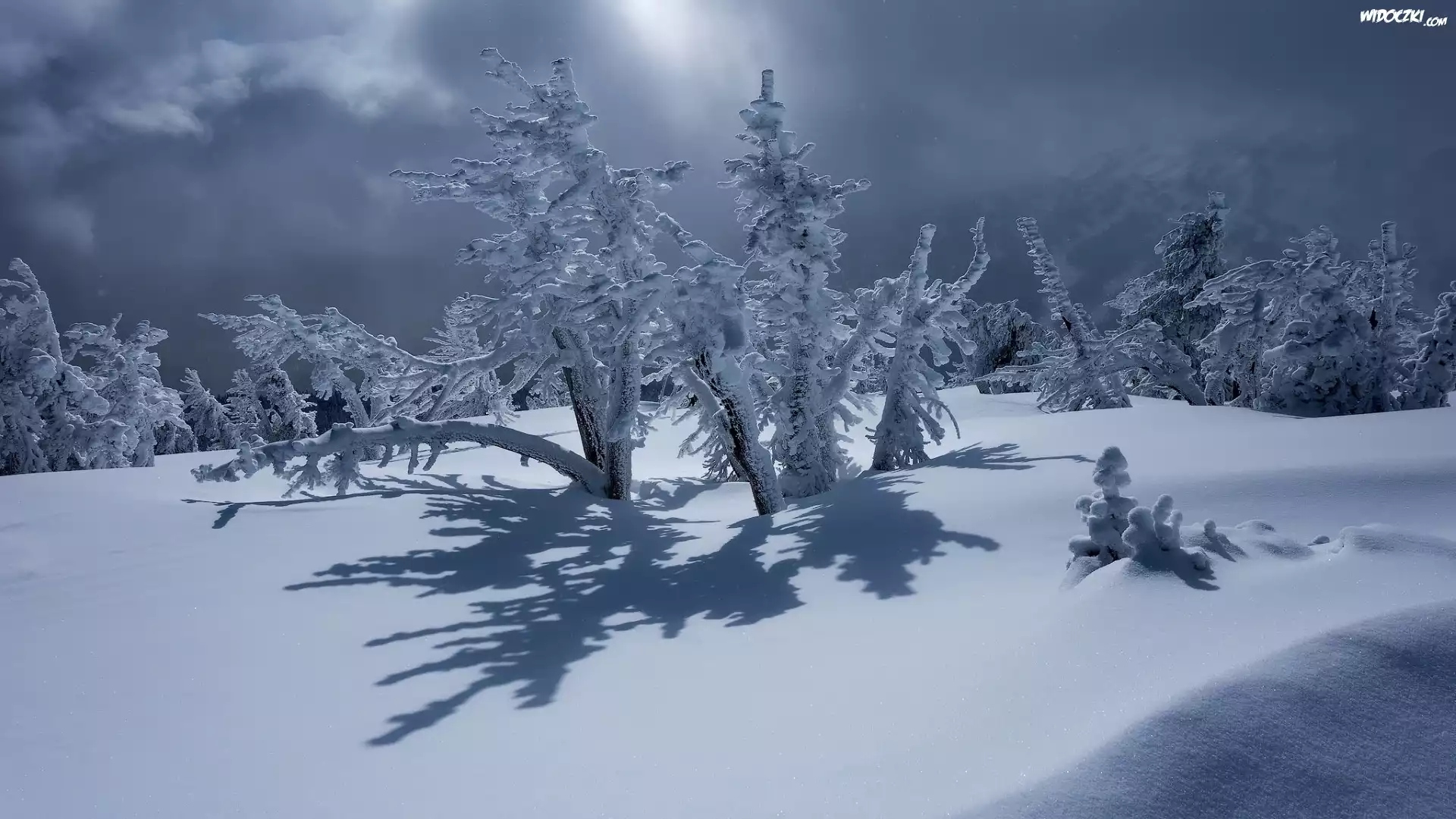 Zima, Śnieg, Ośnieżone, Drzewa, Krzewy