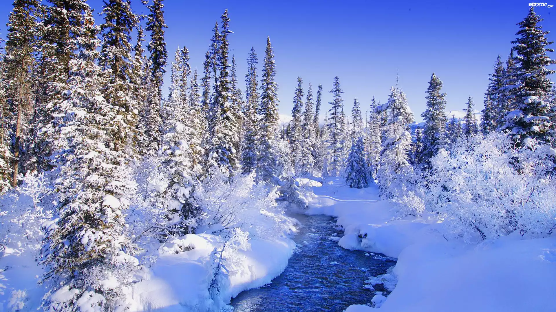 Zima, Rzeczka, Ośnieżone, Drzewa, Śnieg