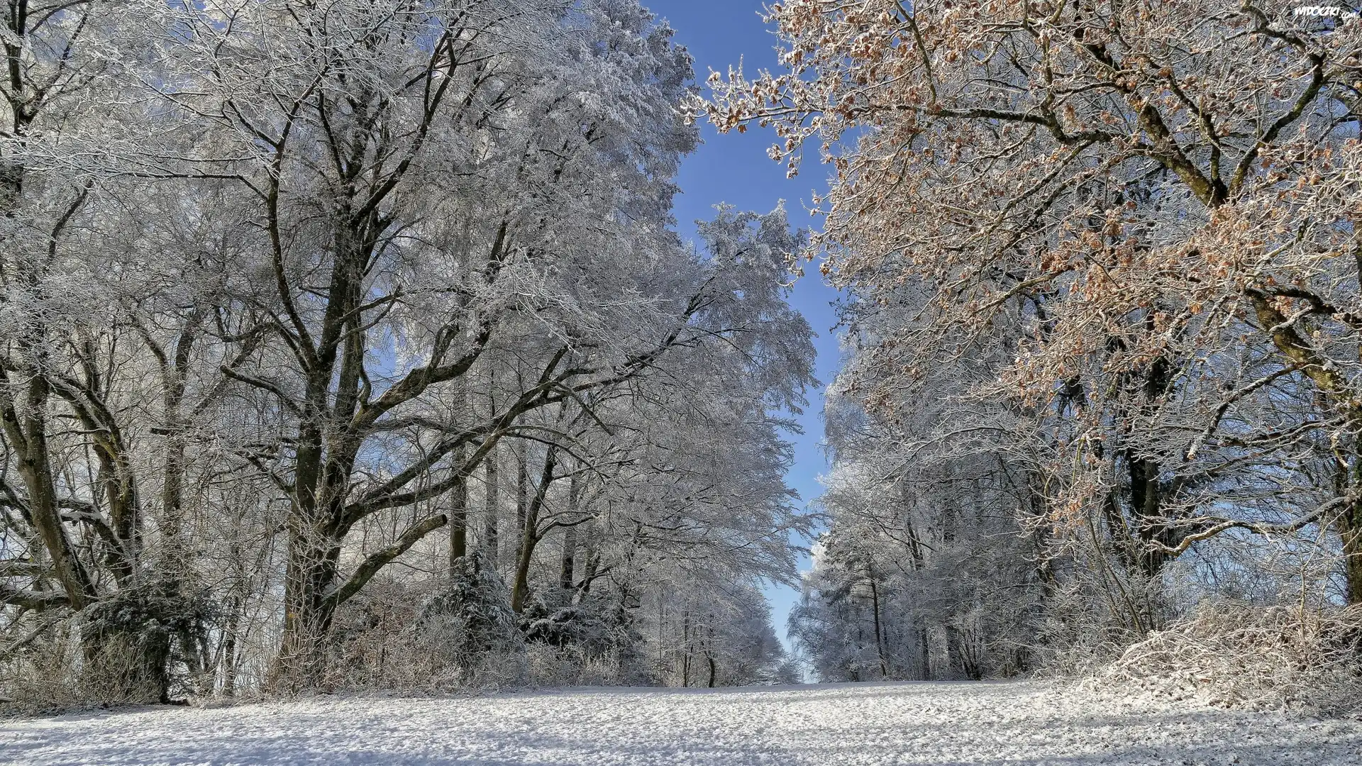 Zdjęcia, Zima, Oszronione, Drzewa, Droga