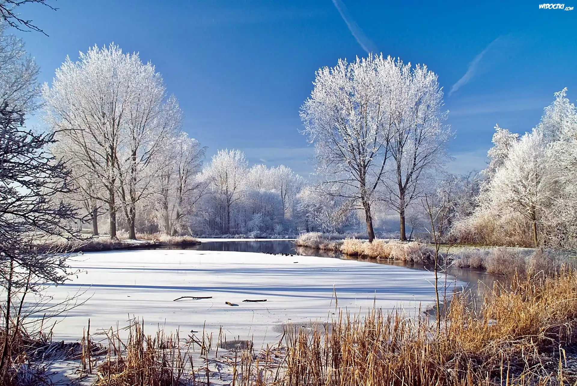 Zdjęcia, Zima Las, Oszronione, Drzewa, Jezioro