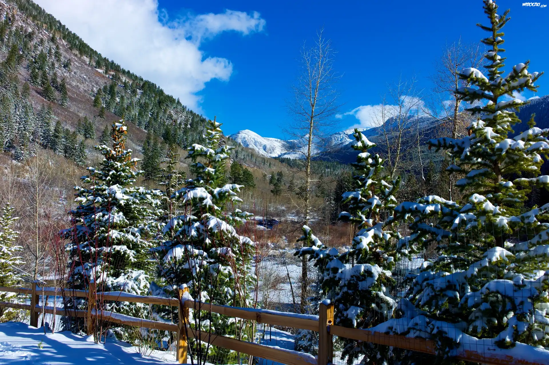 Zdjęcia, Zima, Płotek, Drzewa, Góry