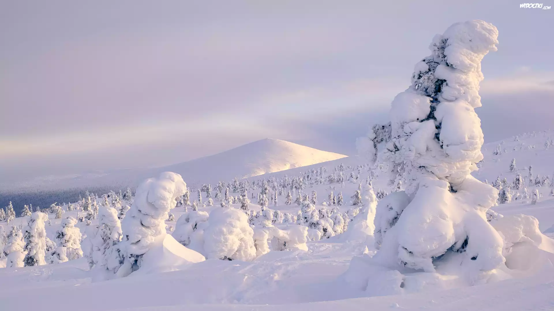 Zdjęcia, Zima, Zaśnieżone, Drzewa, Góry