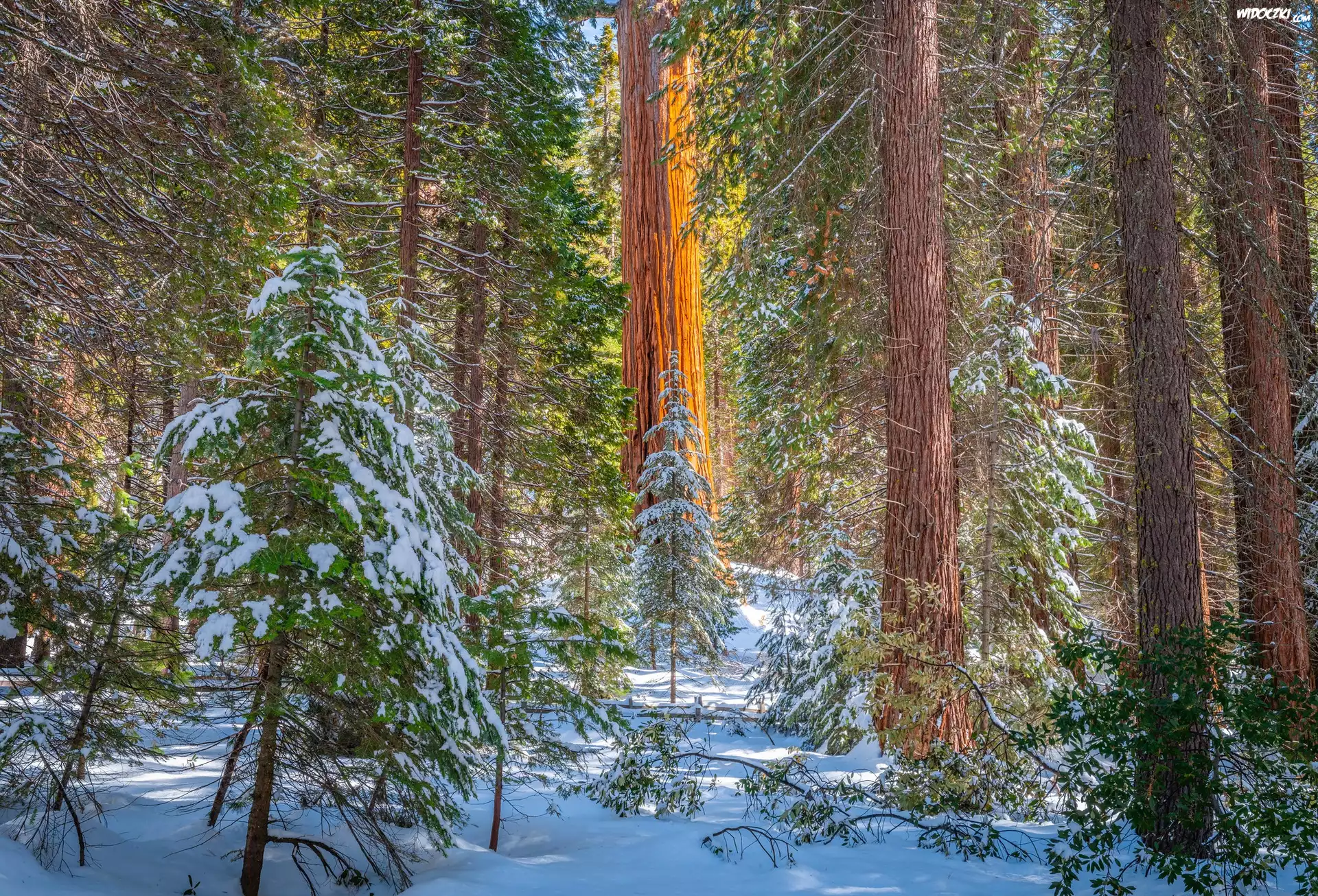 Zdjęcia, Zima, Las, Zielone, Drzewa, Śnieg