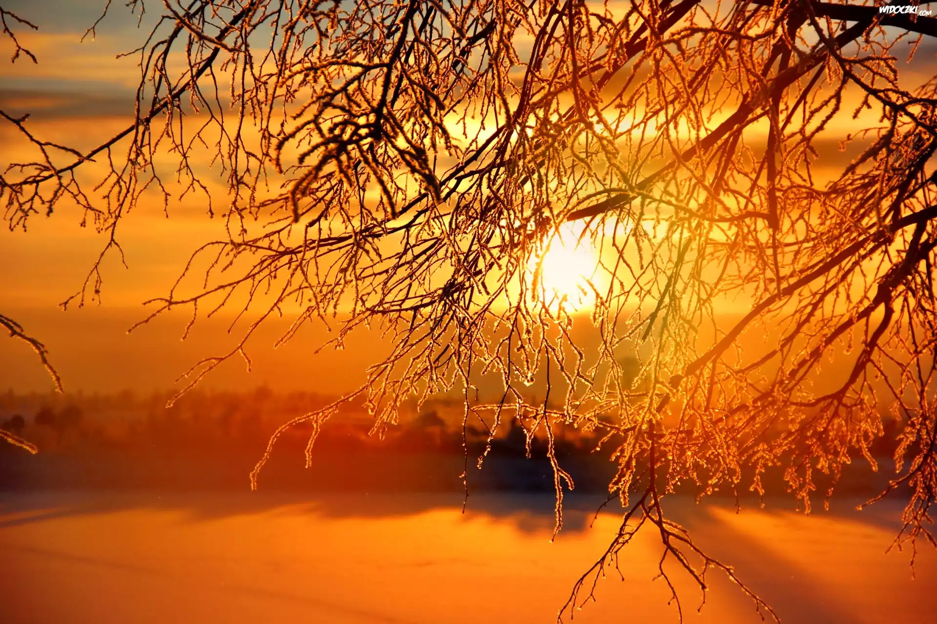Zdjęcia, Zima, Zachód, Słońca, Drzewo, Las