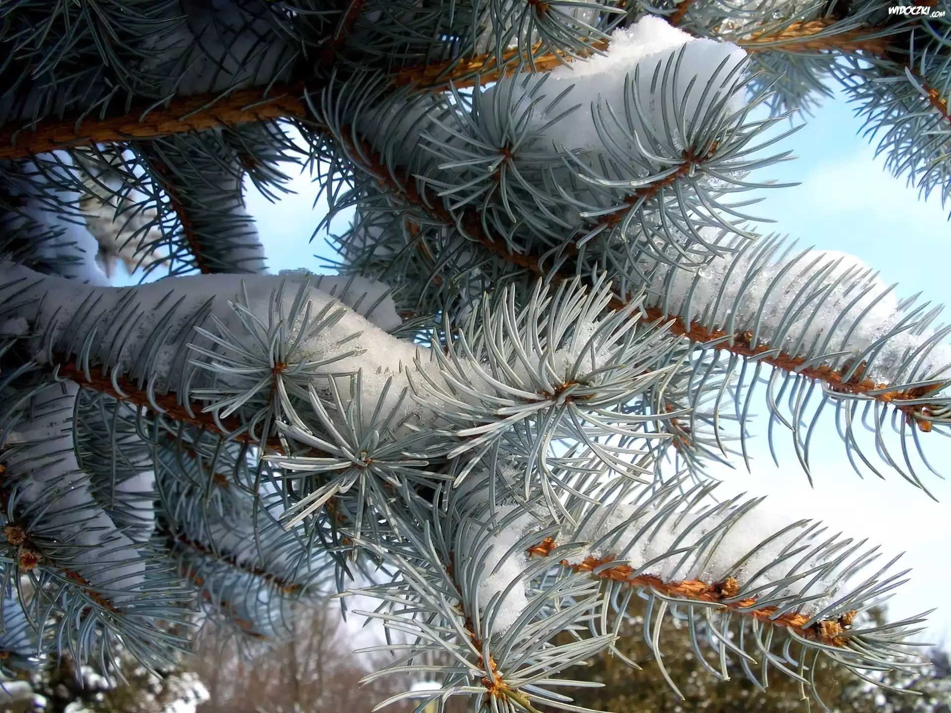 Zdjęcia, Zima, Ośnieżona, Gałązka, Świerku